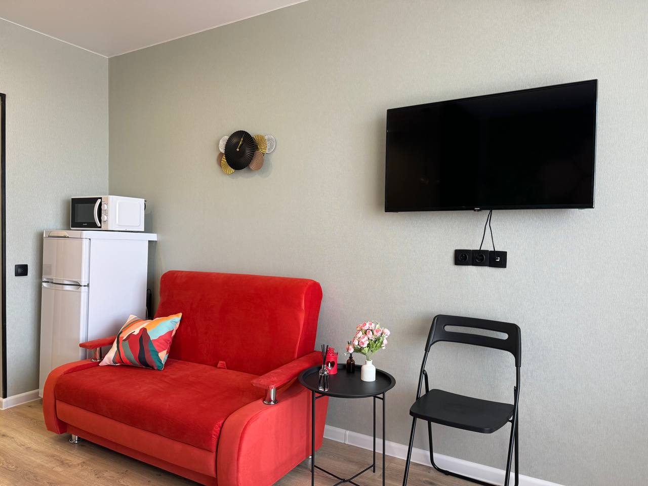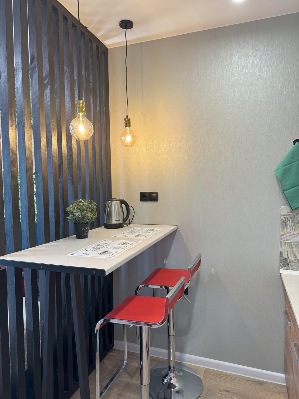 Апартаменты нам с молодым человеком очень понравились. Современный и стильный ремонт, рабочая техника, комфортабельная мебель. Очень порадовала кухня, где есть всё необходимое для приготовления еды. Расположение отличное. Поблизости есть магазины, кафе, остановки.