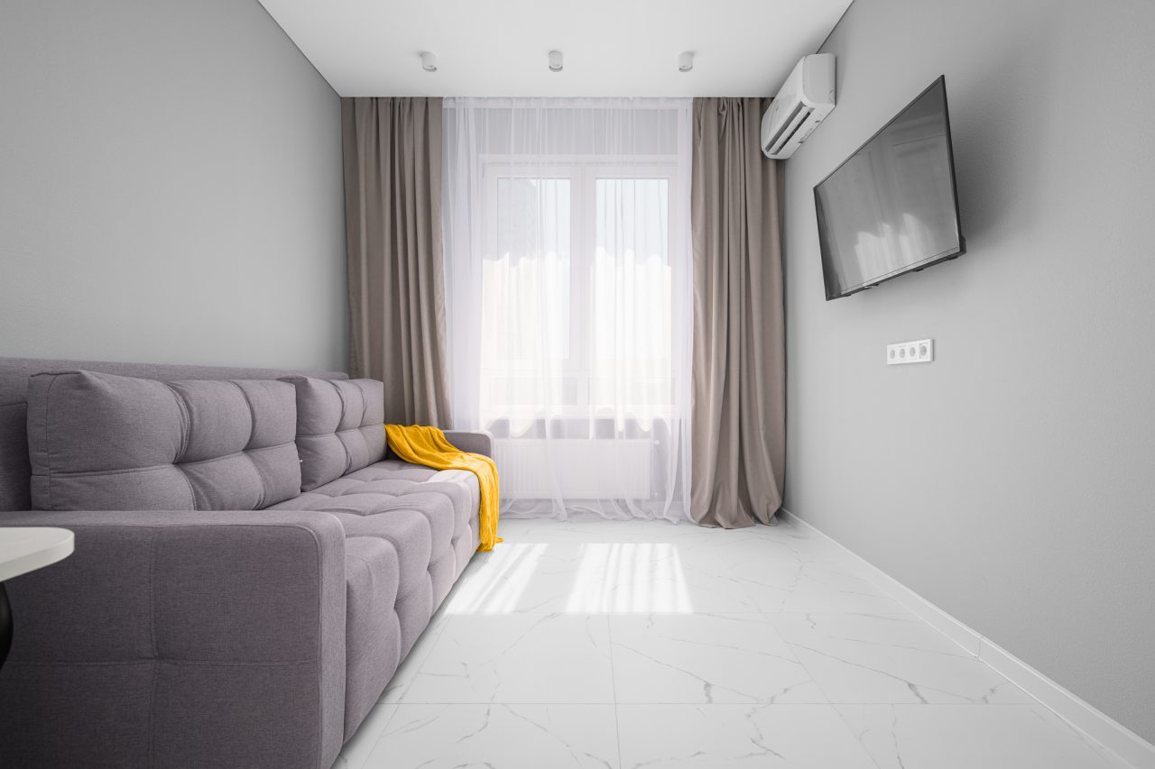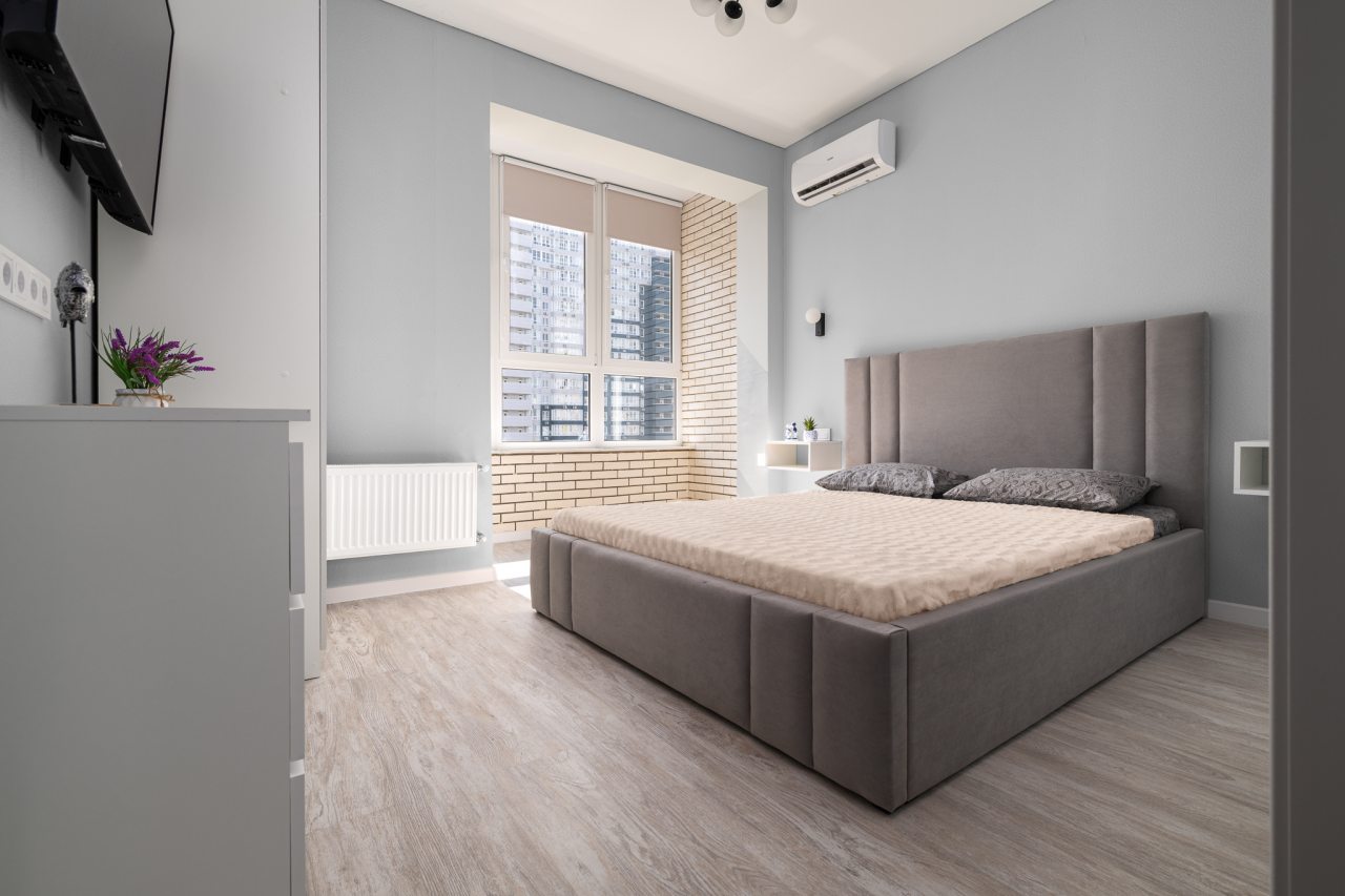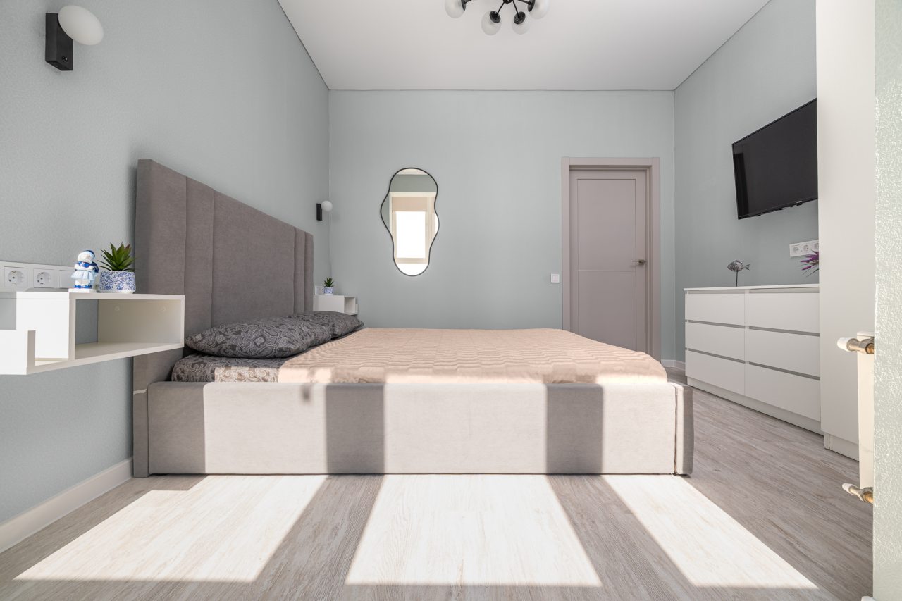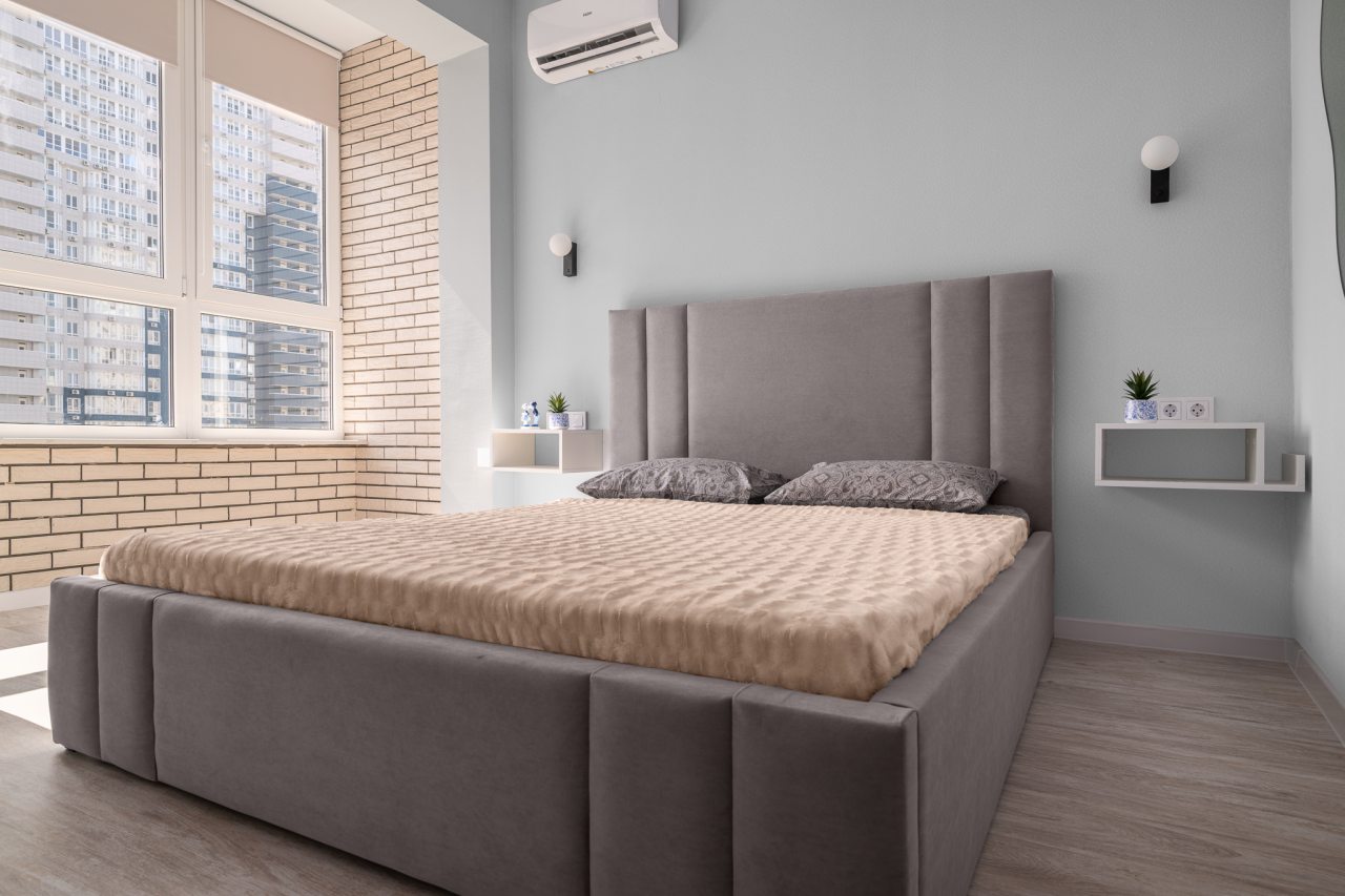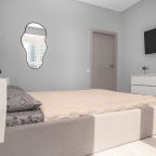 Внутри продумана каждая деталь для комфортного проживания и отдыха, в том числе двуспальная кровать с мягкой обивкой и качественным матрасом, настенные светильники, телевидение, сплит-система, удобный диван, а также ванная комната со стиральной машиной и феном.