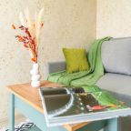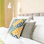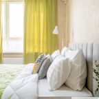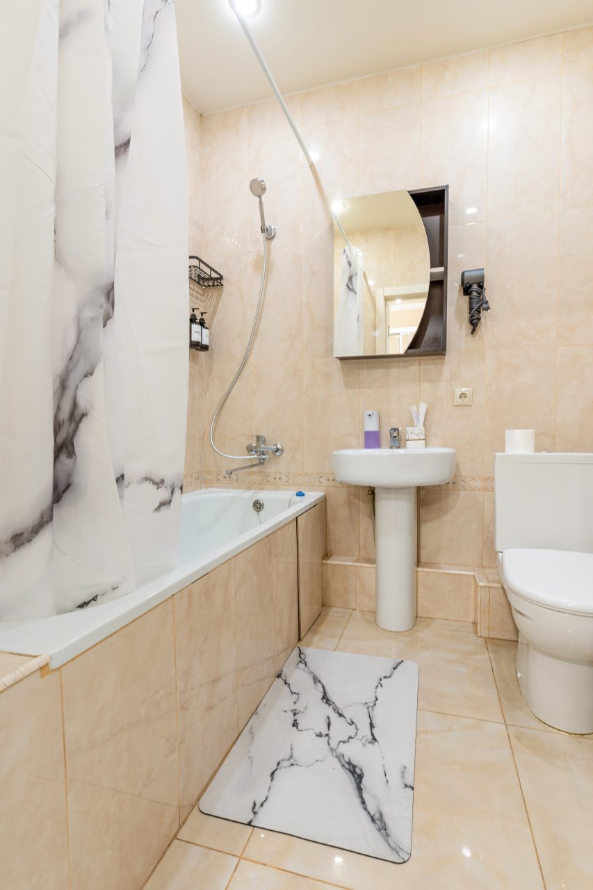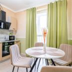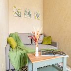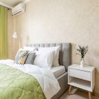 Для гостей подготовлены уютные апартаменты в современном стиле. Они укомплектованы набором качественной мебели и техники для приятного времяпровождения и отдыха: кровать с удобным матрасом, кондиционер для выставления комфортной температуры в комнате, телевизор, диван. В санузле установлена ванная, стиральная машинка и вся необходимая сантехника, имеется фен и средства гигиены.