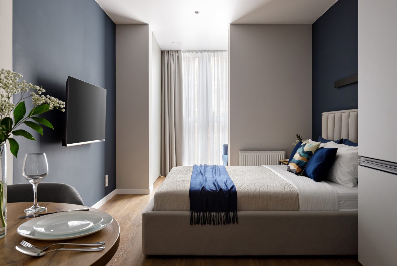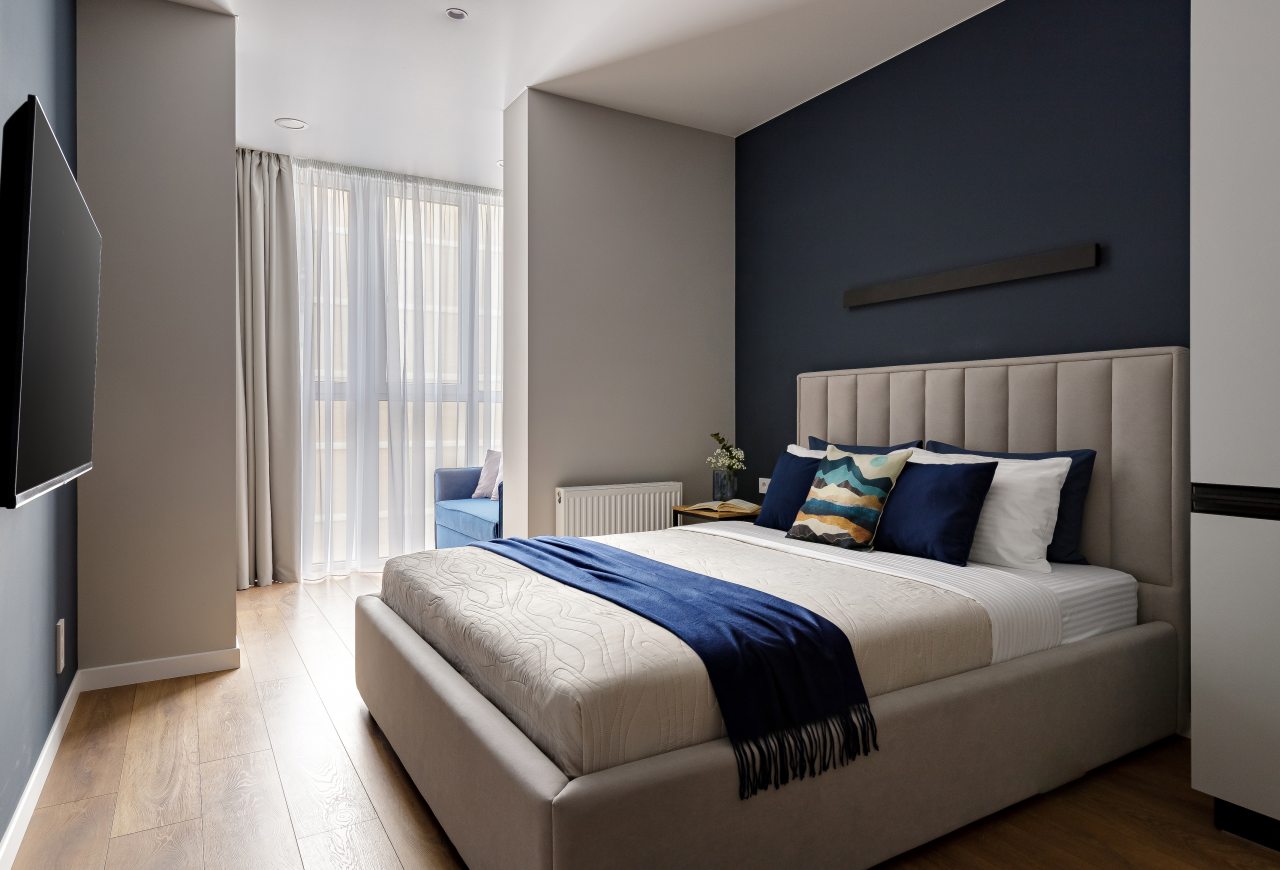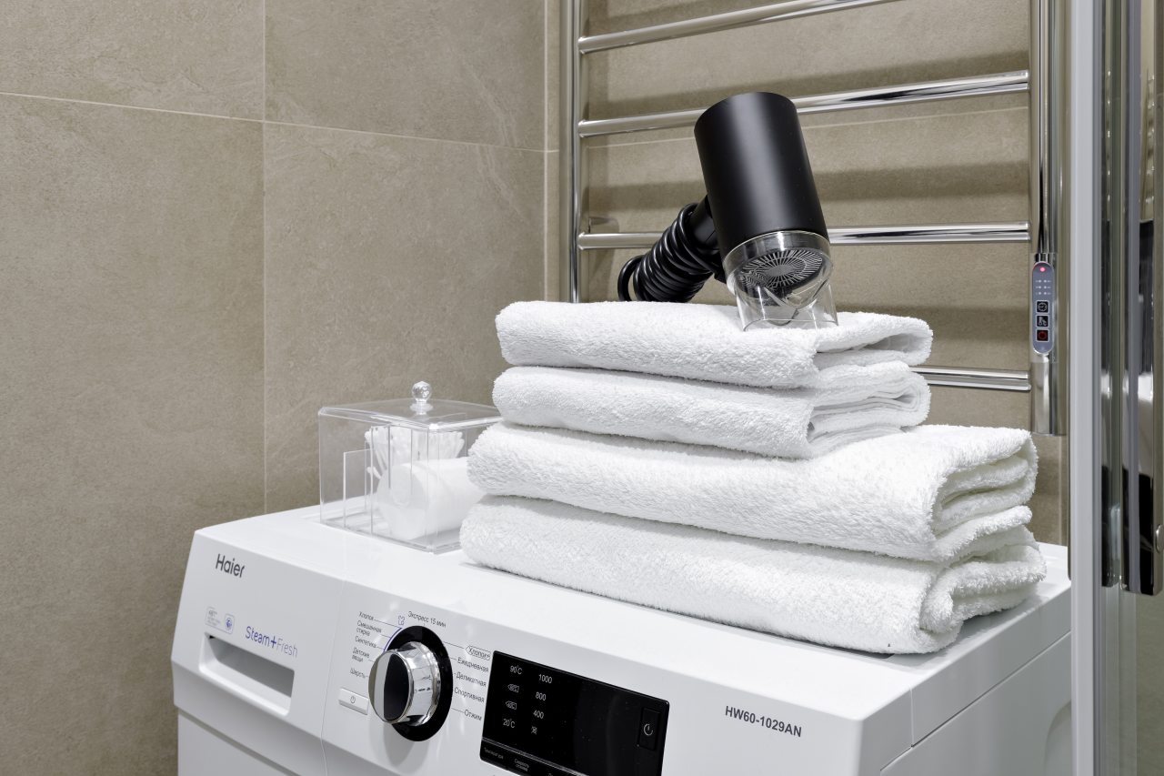 Уютные Апартаменты оснащены удобной двуспальной кроватью с чистым комплектом постельного белья, розетками возле спального места, затемненными шторами, телевизором, wi-fi и др. Санузел укомплектован качественной сантехникой, гигиеническими средствами и стиральной машиной.
