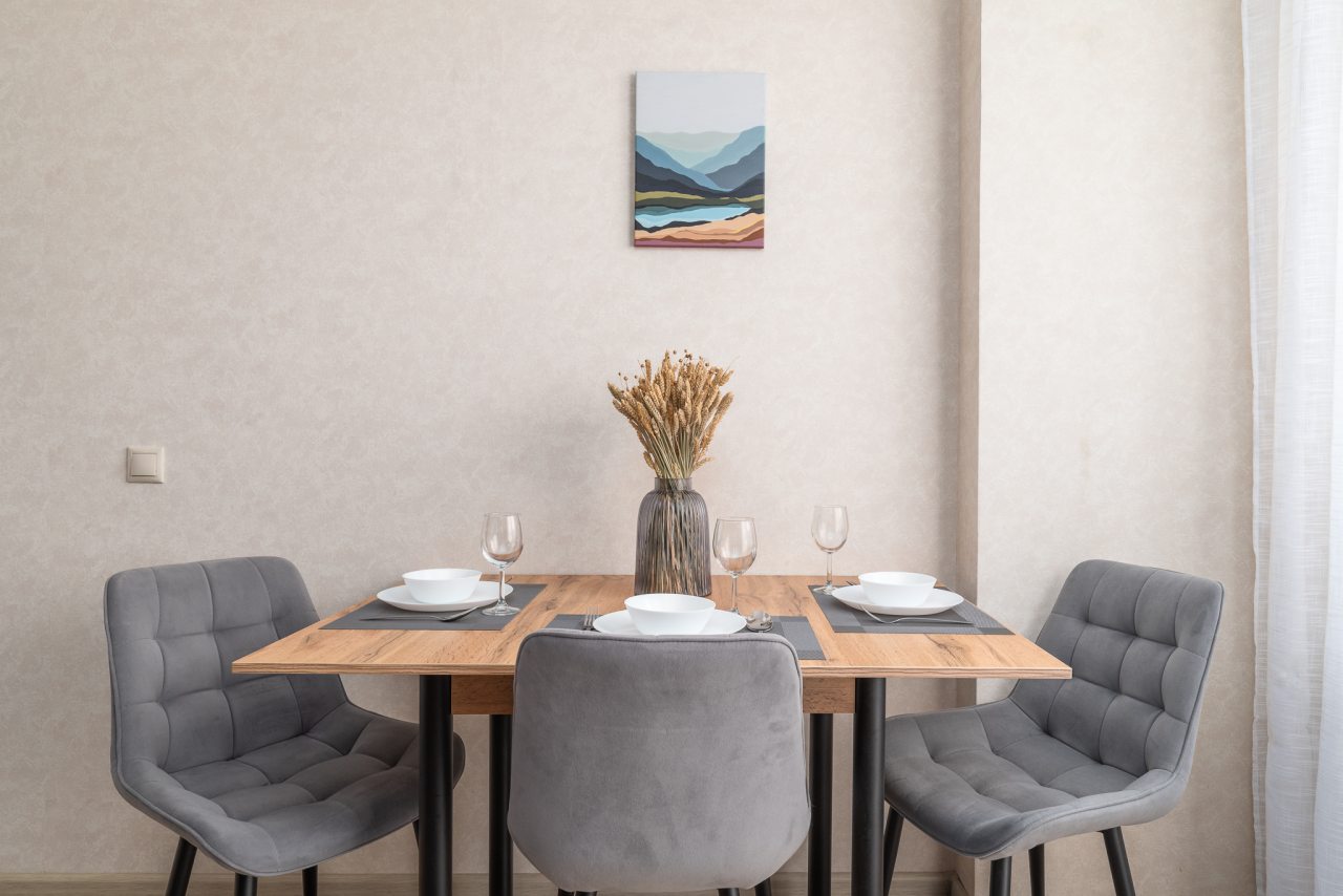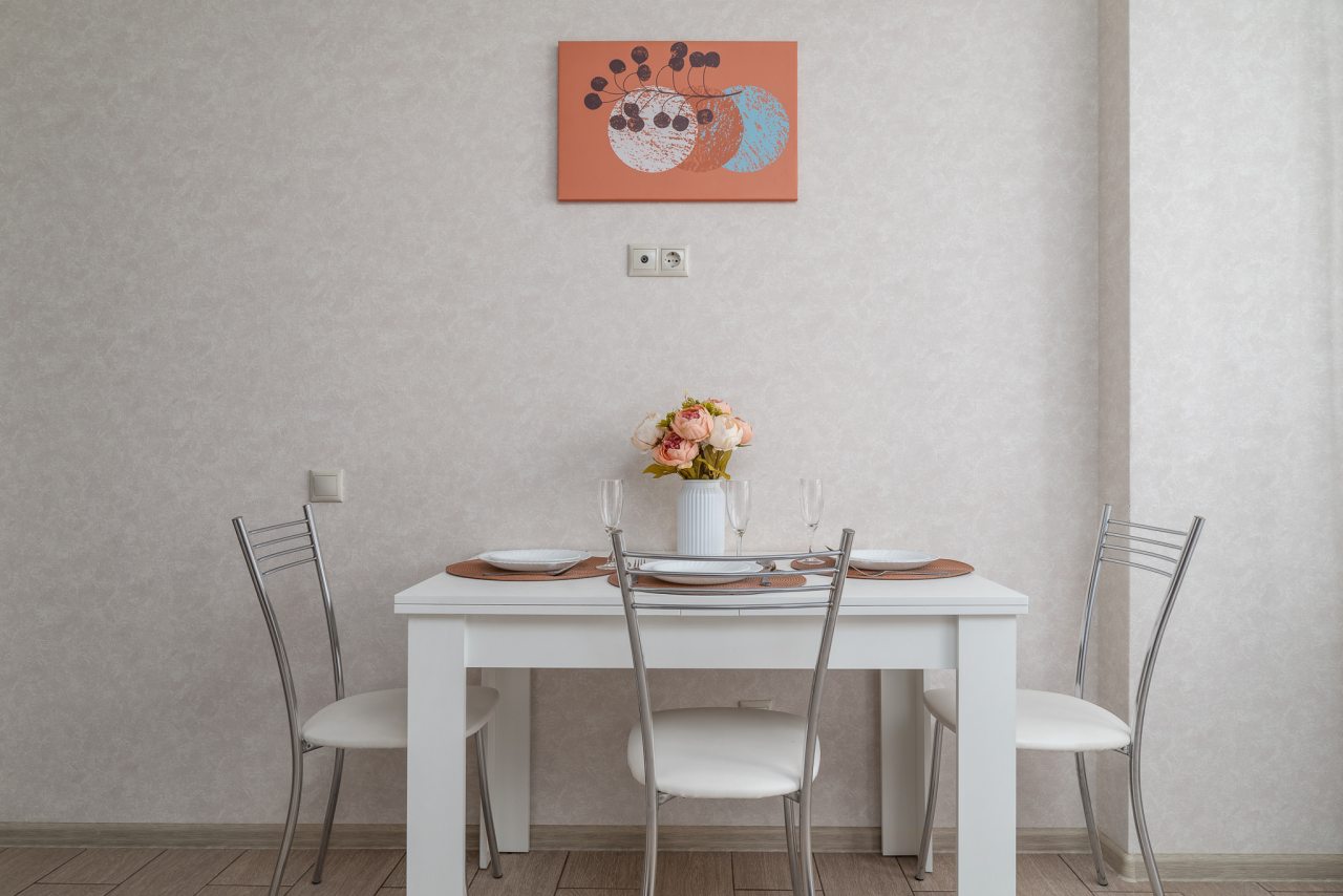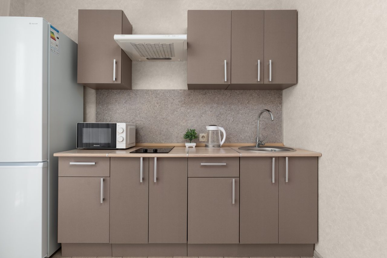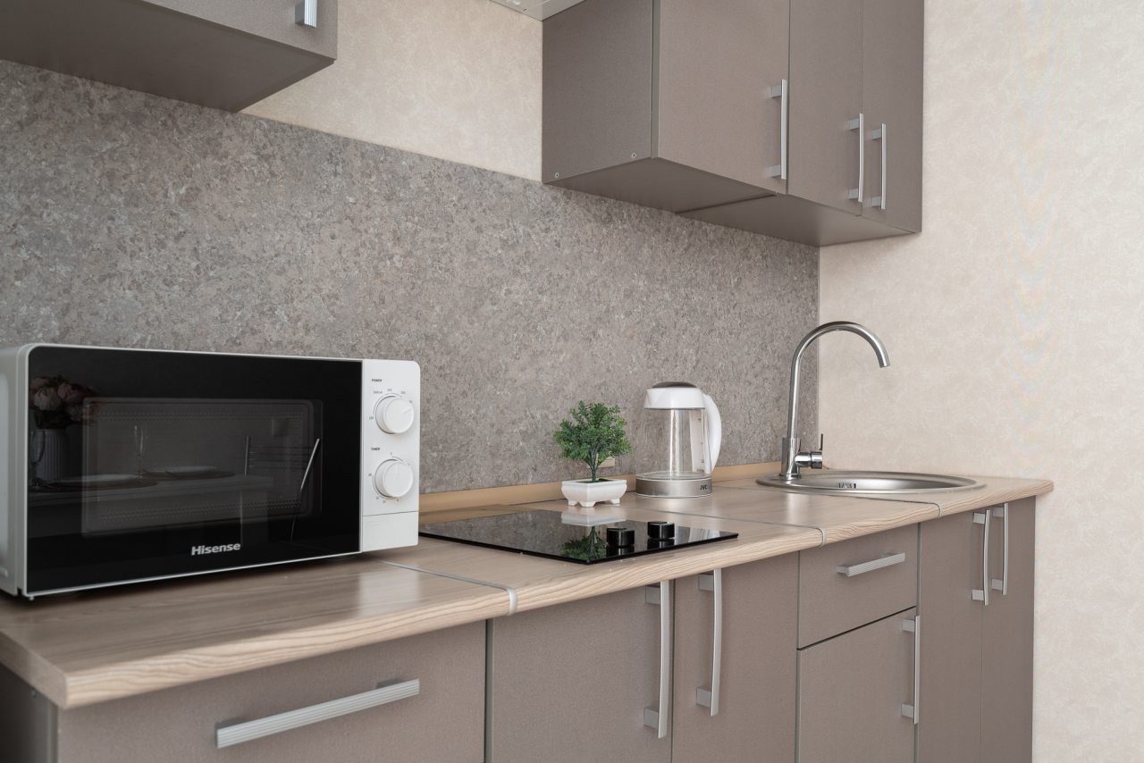 Кухонная бытовая техника может отличаться в зависимости от категории. В большинстве имеется плита, чайник, холодильник, обеденный стол со стульями, СВЧ.