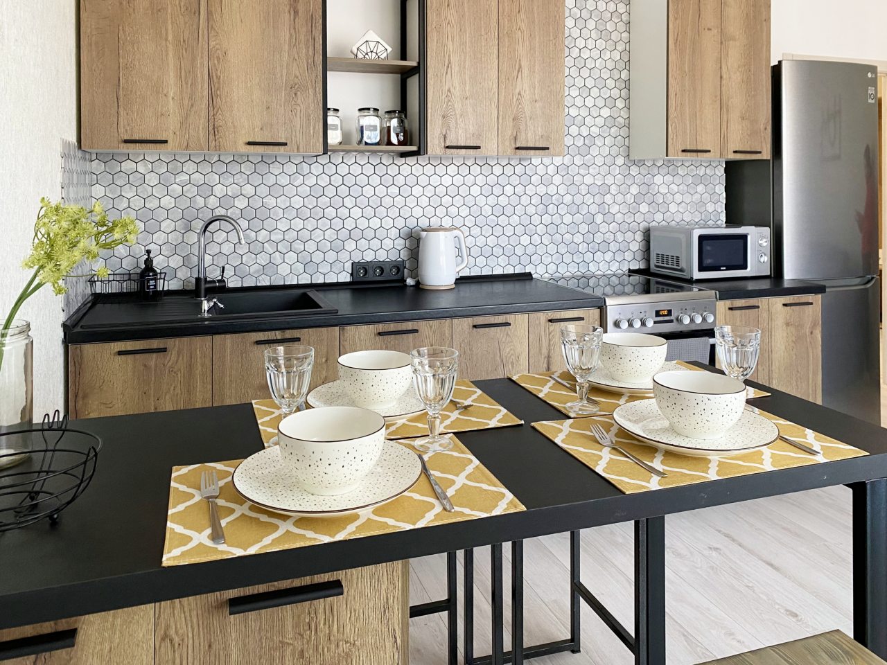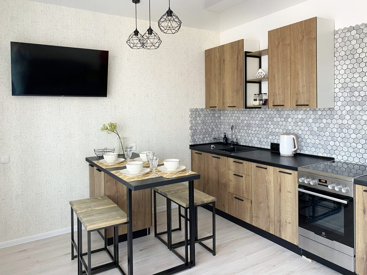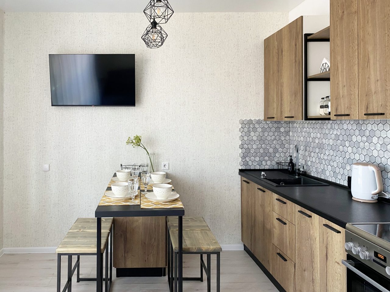 Кухонная бытовая техника может отличаться в зависимости от категории. В большинстве имеется плита, чайник, холодильник, обеденный стол со стульями, СВЧ.