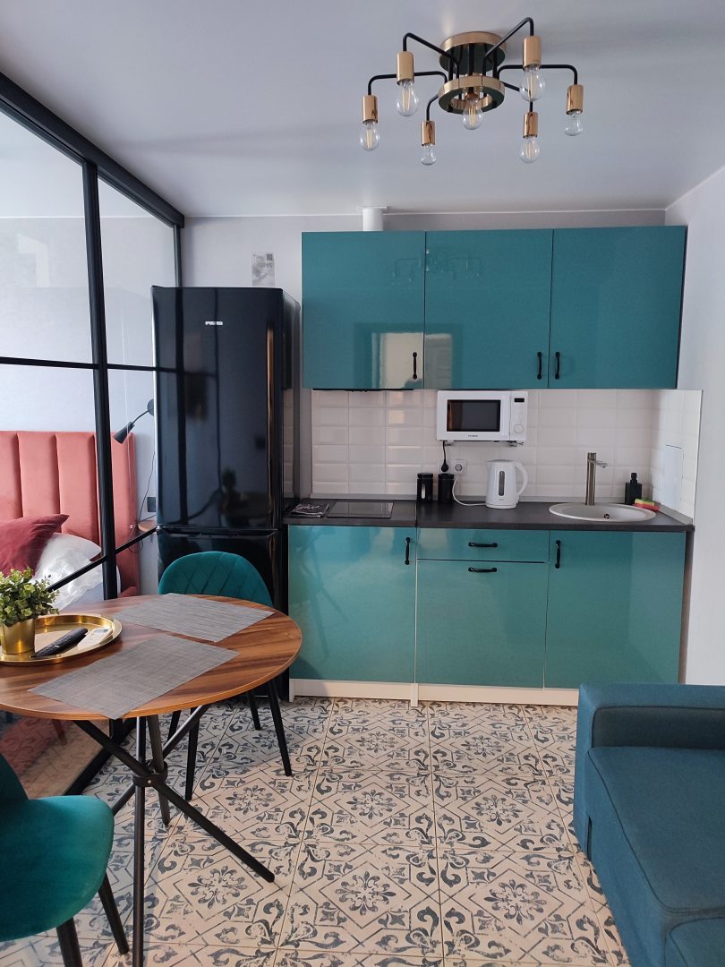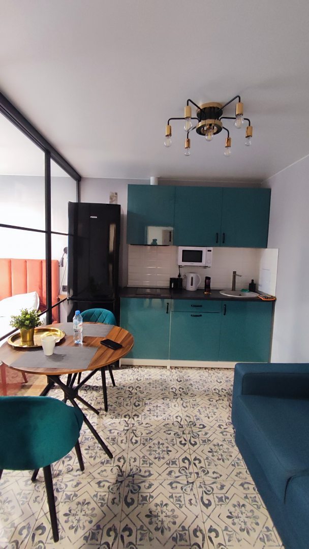 Хорошее местоположение. Недалеко от парка Галицкого. Рядом магазины, кулинария и прочее. Очень комфортная студия. Есть всё необходимое, учтены все мелочи от наличия полотенец до сахара и чая на кухне. Интернет летает. В ванной комнате стиральная машинка. На кухне вся необходимая посуда и техника. Очень приятная обстановка, уютно. Приехали семьей на праздники погулять по Краснодару с 9 по 12 мая. Остались довольны проживанием в апартаментах. Бесконтактное заселение удобно.