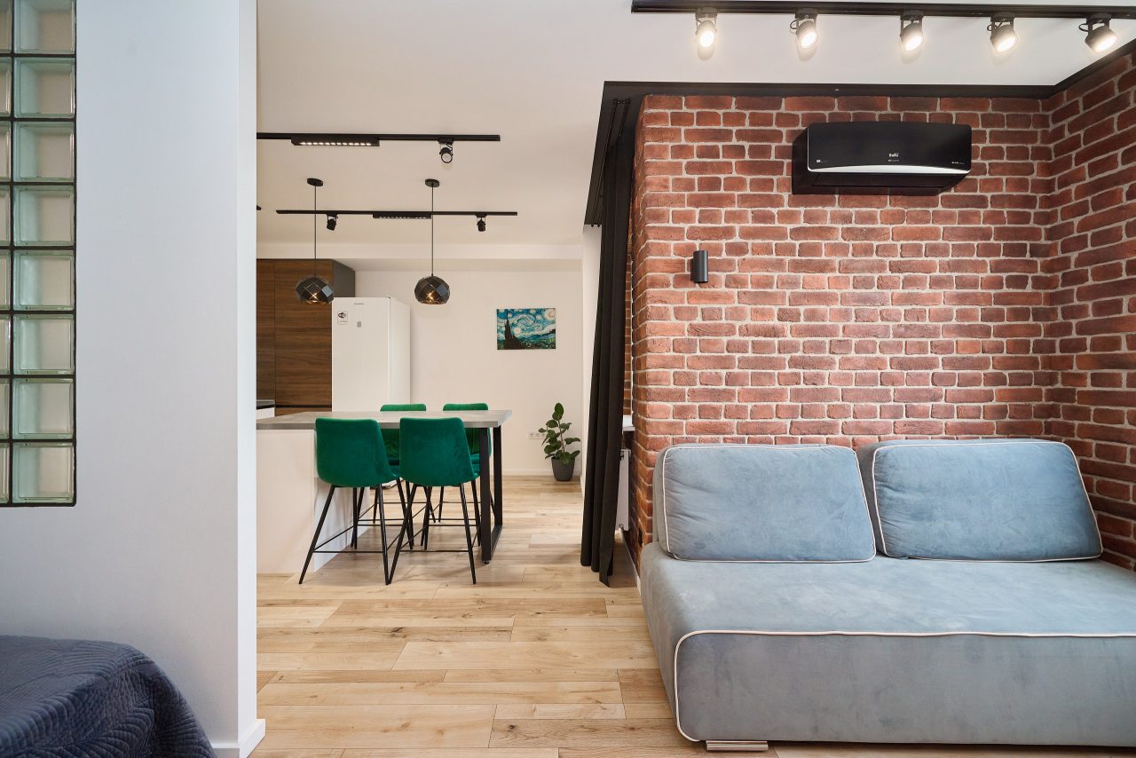Апартаменты с современным ремонтом оснащены удобной двуспальной кроватью, диваном, кондиционером, телевизором, балконом с видом на город и др. Доступна точка wi-fi. Ванная комната оборудована качественной сантехникой.