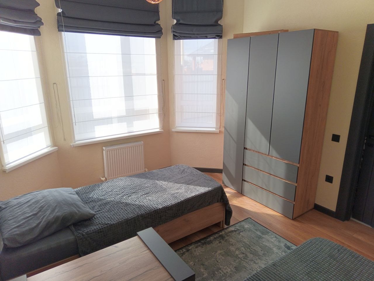 Стильные апартаменты с современным ремонтом оборудованы удобными спальными местами, шкафом, кондиционером, большими окнами, кухонной зоной и собственной ванной комнатой с комплектом качественной сантехники. Доступна точка высокоскоростного интернета.