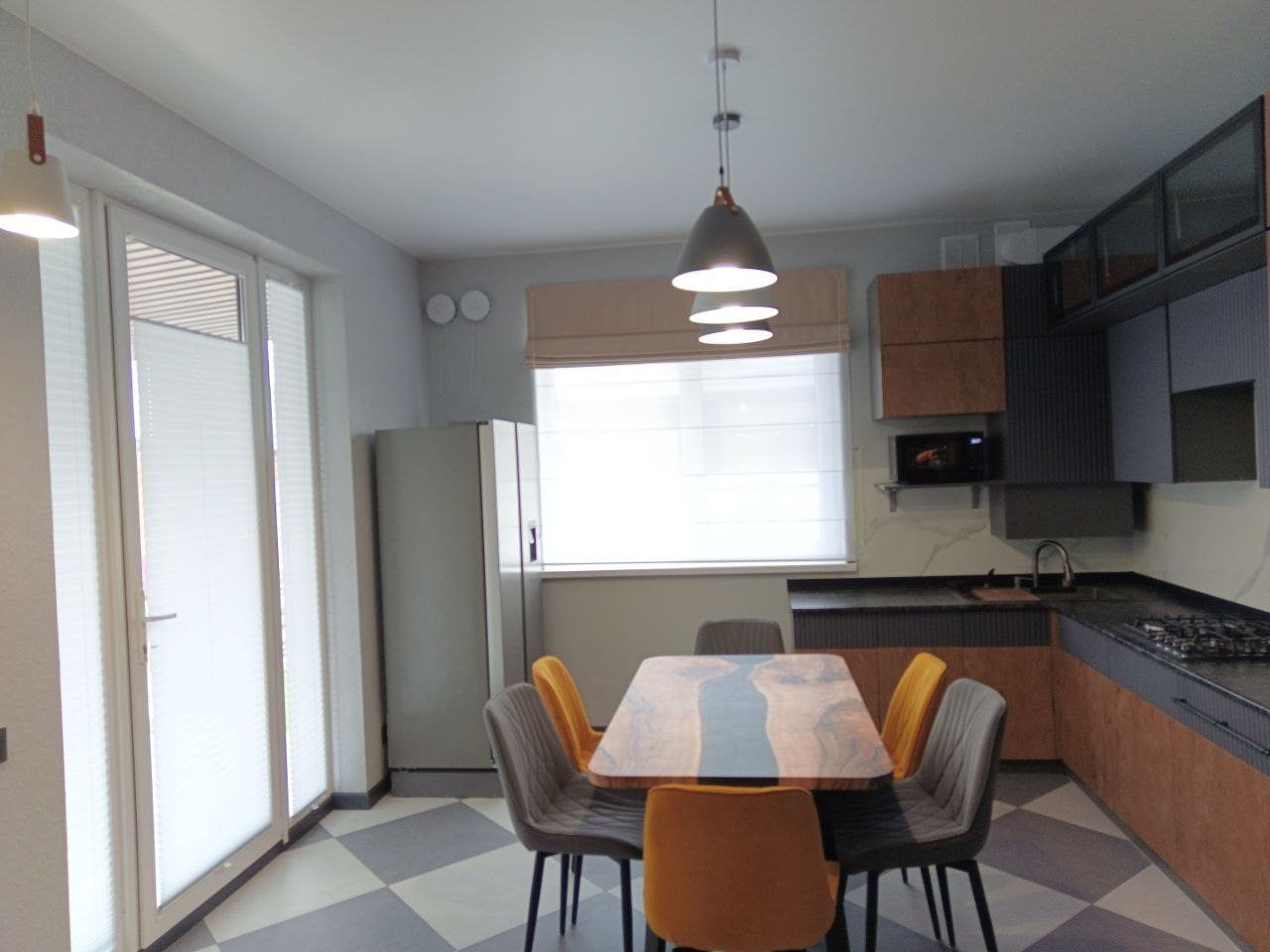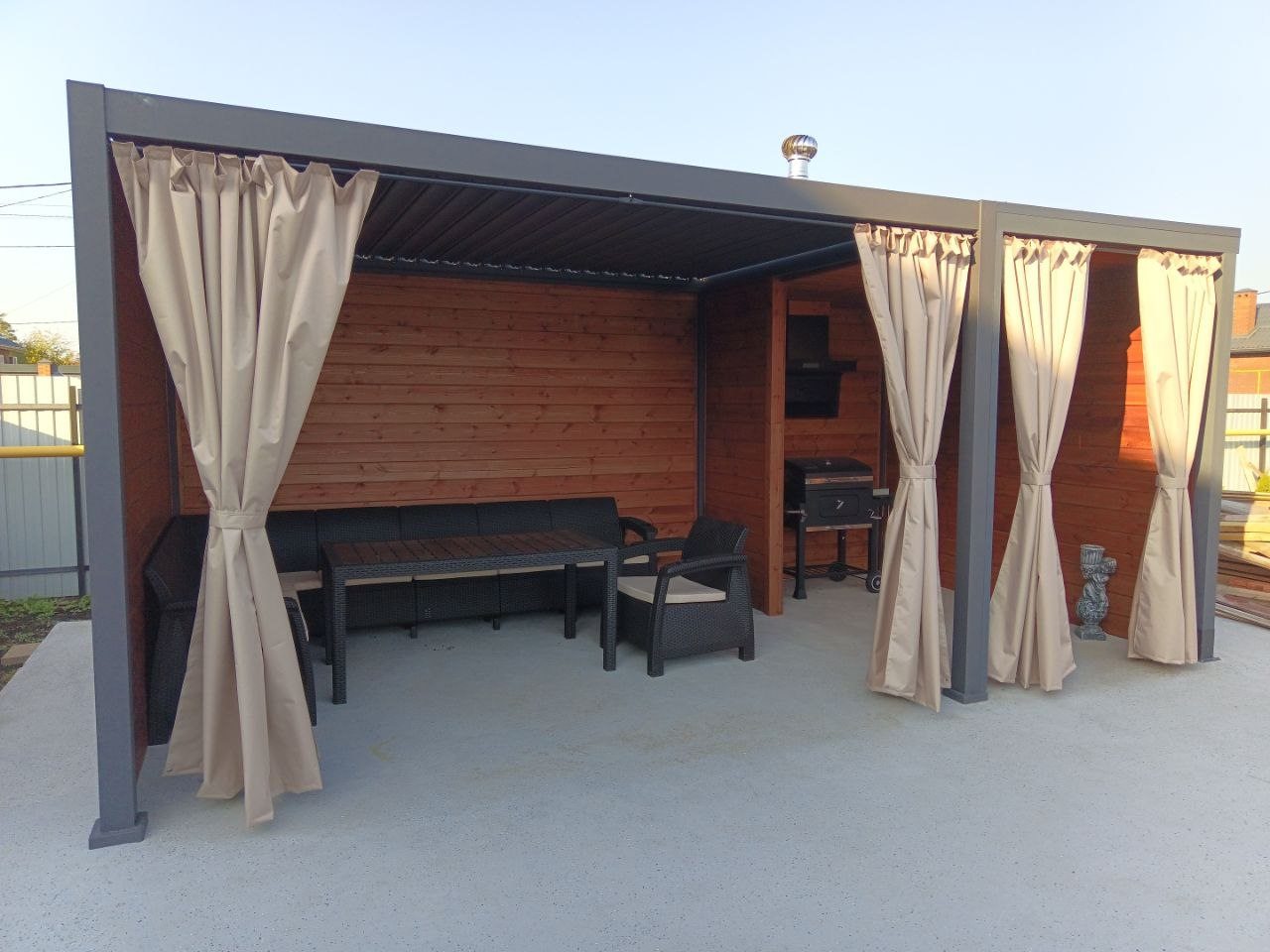Просторная кухня оснащена гарнитуром, газовой плитой, холодильником, микроволновой печью, духовым шкафом, электрочайником и обеденным столом. Для любителей барбекю предусмотрена беседка с мангальной зоной.