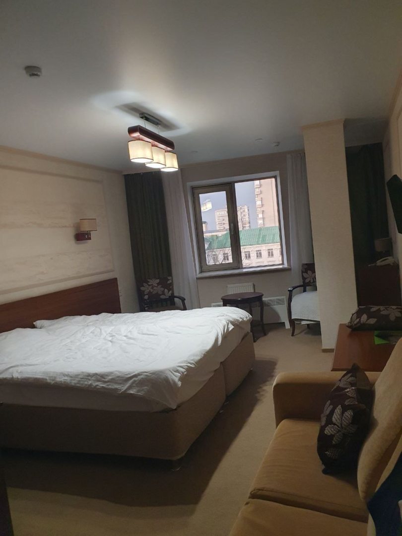 Приезжали к сыну на присягу. Выбрали этот отель по хорошим отзывам. Заселили нас быстро, предоставили всю информацию по отелю. Девушки администраторы приветливые, вежливые и спасибо большое им за внимательное отношение к клиентам. Мы бронировали номер люкс с холлом. Номер чистый, уютный с двумя небольшими балконами. Для комфортного проживания есть всё-халаты, тапочки, гигиенические принадлежности, фен, полотенца. В номере есть холодильник, чайный уголок, сплитсистема с регулировкой температуры, ТВ зона, мягкий уголок. Несмотря на проезжую часть дороги и кафе через дорогу, было не шумно. Завтраки в отеле разнообразные и вкусные. Можно заказать меню с ресторана отеля прямо в номер. Принесли заказ к точно указанному времени. Без проблем предоставили дополнительный комплект полотенец, тапочки и халат для нашего сына. Отдельная благодарность за оказанную услугу по стирке военной формы. За короткое время постирали, высушили и погладили форму . Мы остались довольны за оказанный сервис в вашем отеле и прекрасный отдых. Развития и процветания вам!!!