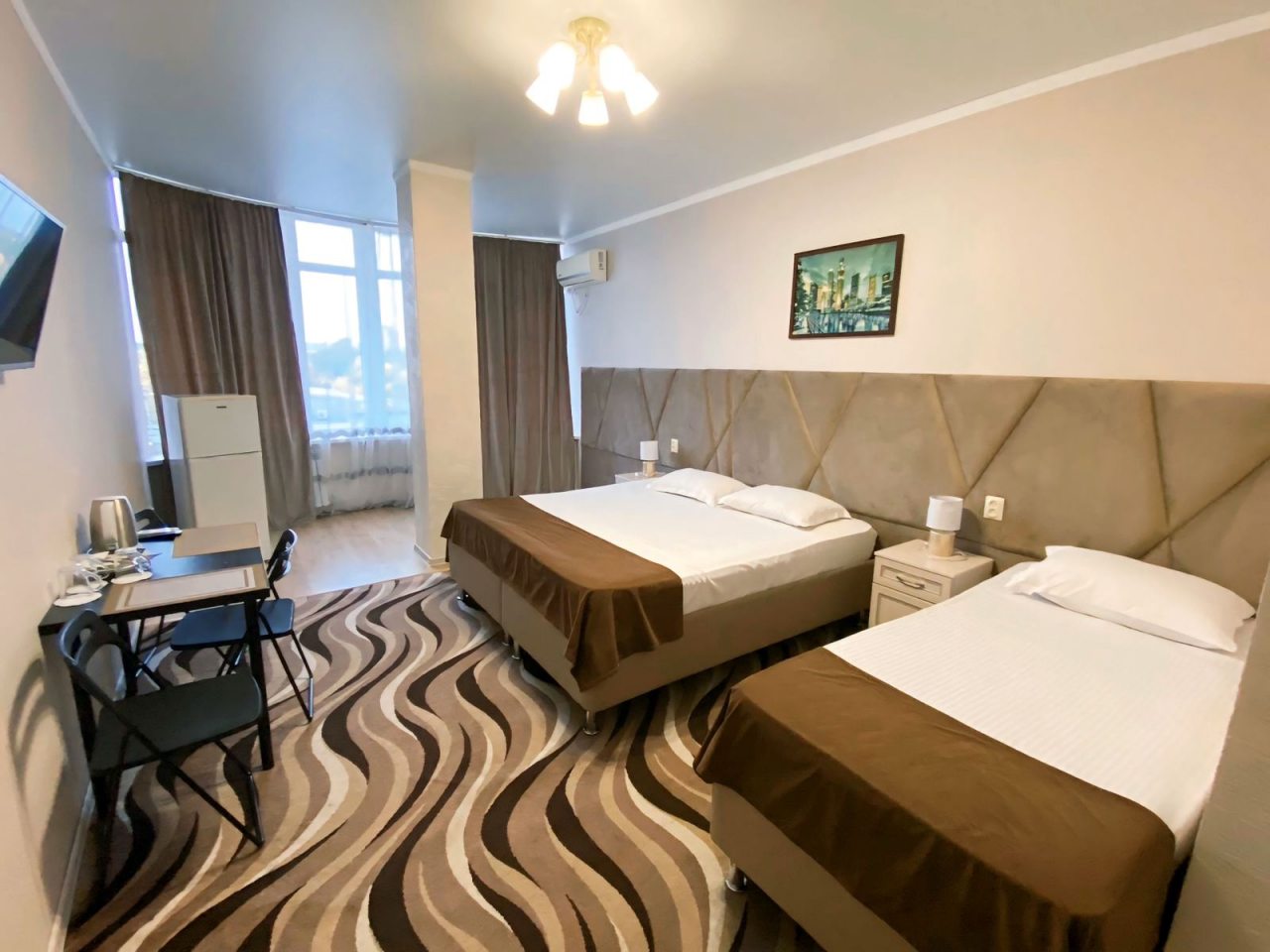 Встретили поздно ночью, очень быстро заселили. В номере идеальная чистота, растворимый кофе, чай, сахар, чайник. Полотенца на каждого по 3шт, уровень отеля намного выше ценника! В следующий раз при поездке в Краснодар, только сюда!