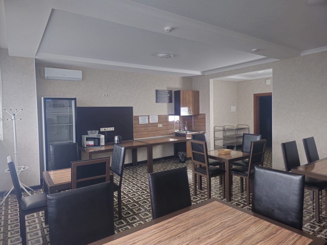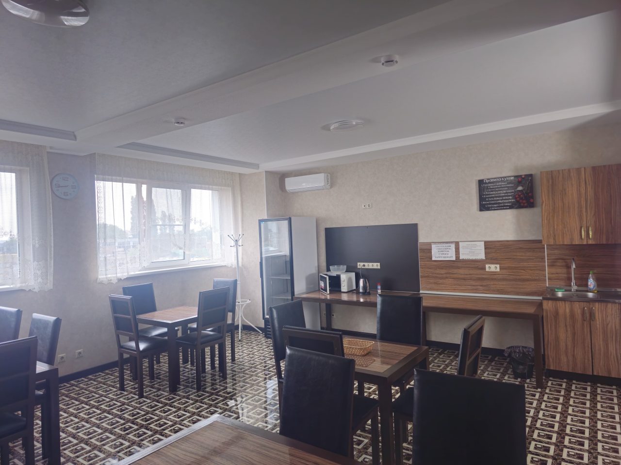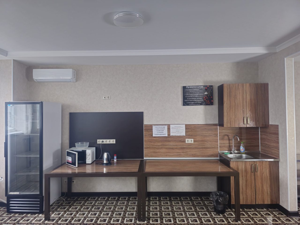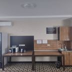 В каждом номере есть небольшая обеденная зона и кухня, где проживающие могут самостоятельно готовить пищу. Для этого в наличии варочная панель, духовой шкаф и электрический чайник.