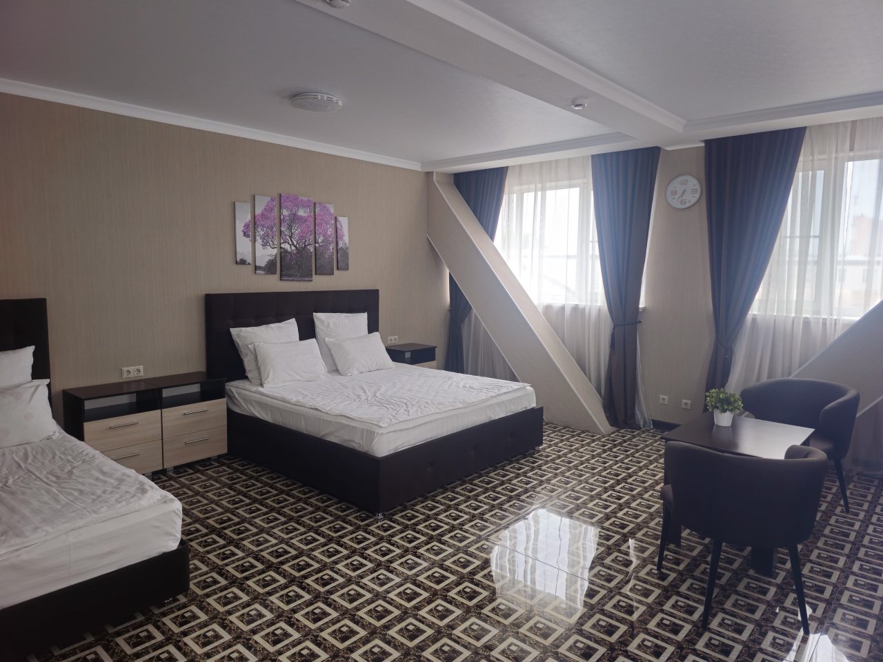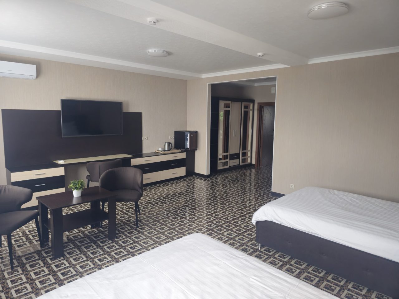 Предлагаются семейные двухкомнатные номера категории Люкс. Они включают в себя просторную комнату с большой кроватью, шкафом, санузлом с душевой кабиной, раковиной и туалетом. Постельное белье и полотенца выдаются.