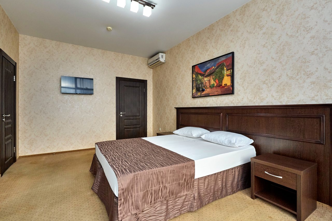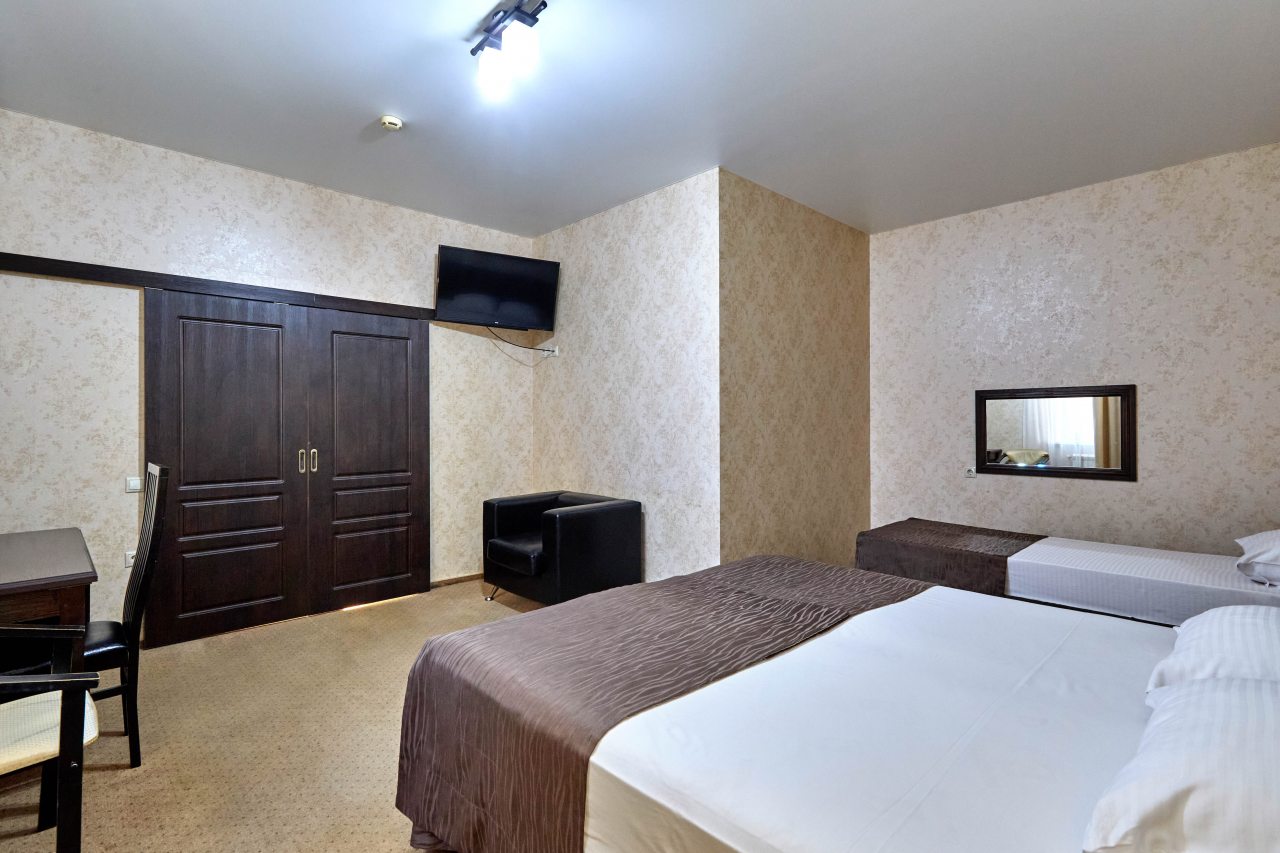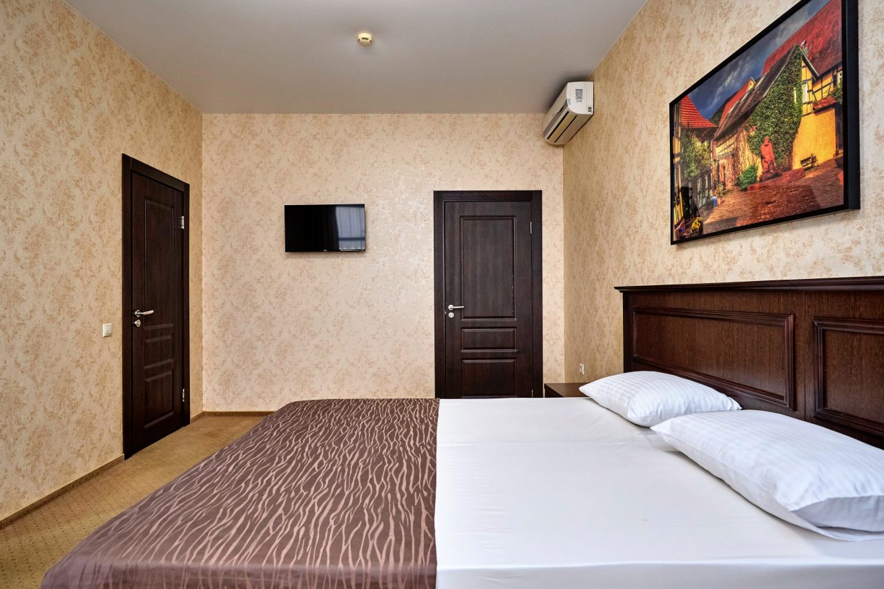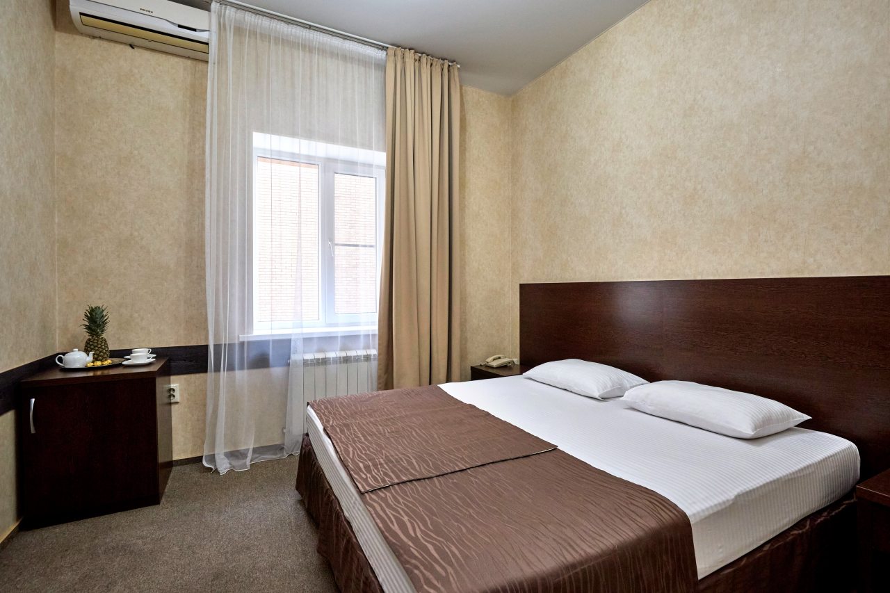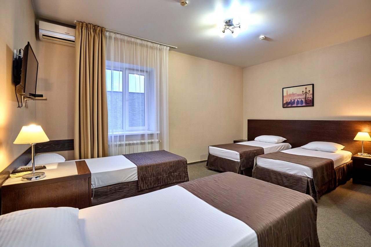 Просторные номера разной вместимости от 2 до 6 человек оснащены удобными спальными местами, прикроватной мебелью, кондиционером, вешалками для верхней одежды, шкафом, телевизором с кабельным телевидением, wi-fi и др. Собственная ванная комната укомплектована качественной сантехникой, феном, гигиеническими средствами.