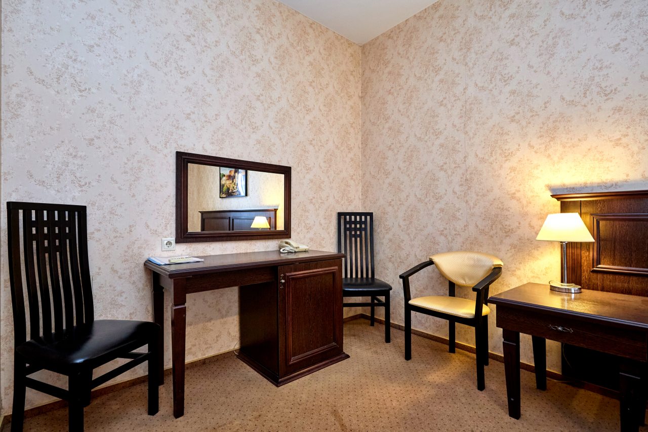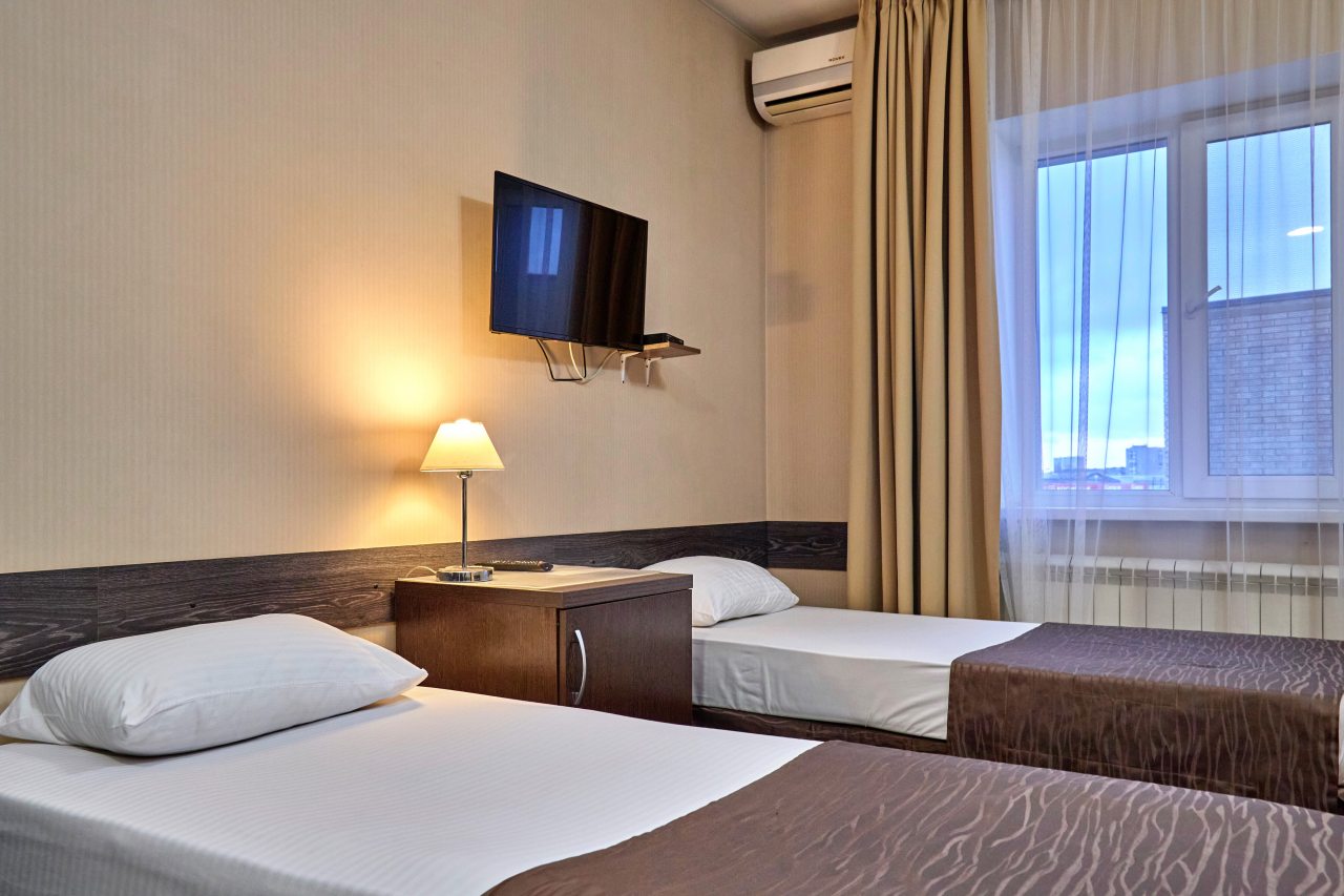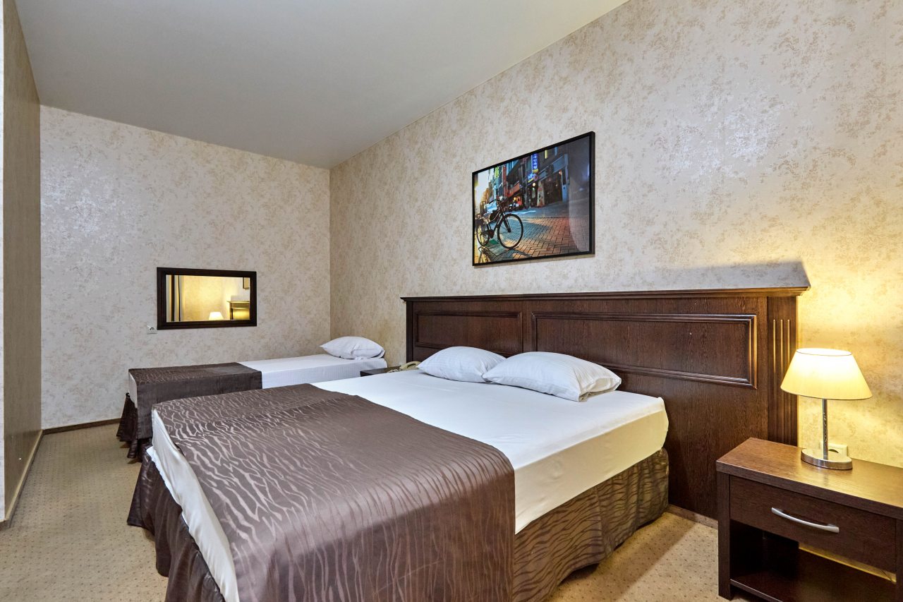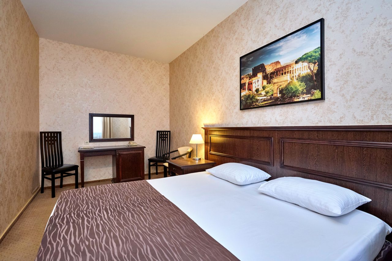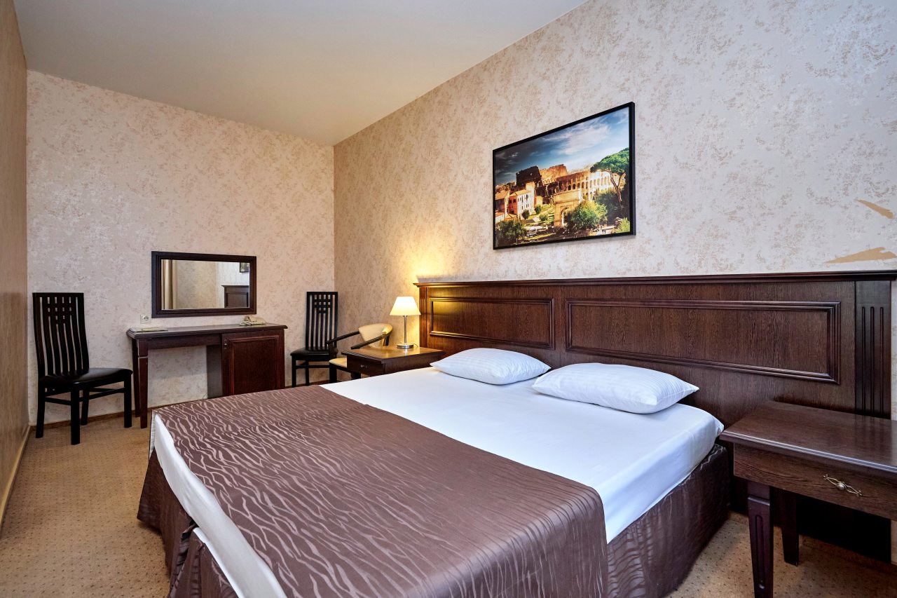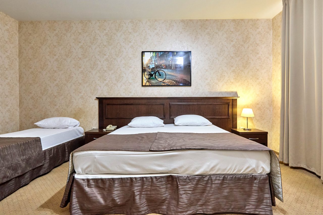 Просторные номера разной вместимости от 2 до 6 человек оснащены удобными спальными местами, прикроватной мебелью, кондиционером, вешалками для верхней одежды, шкафом, телевизором с кабельным телевидением, wi-fi и др. Собственная ванная комната укомплектована качественной сантехникой, феном, гигиеническими средствами.