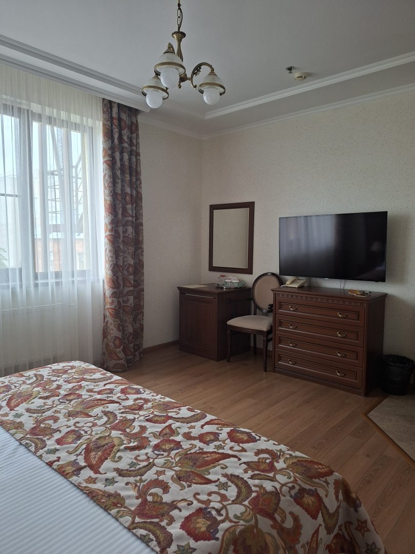 Отель расположен практически в центре Краснода, всё в пешей доступности магазины,рестораны, рынок и центральная зона для гуляний. В отеле чисто уютно. Номер (люкс 301) прекрасный двухкомнатный.Все работает телевизор холодильник интернет. Всё необходимое в ванной комнате есть. Ежедневно убирали. Персонал очень вежливый!!! Если заказывать завтрак, то на той же территории уютный ресторан. Всё свежее готовят для вас. Заказать нужно заранее. Спасибо всём за наш хороший отдых!!! Отель рекомендую.