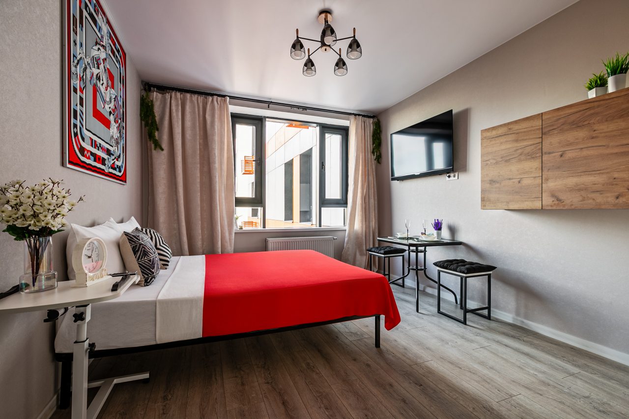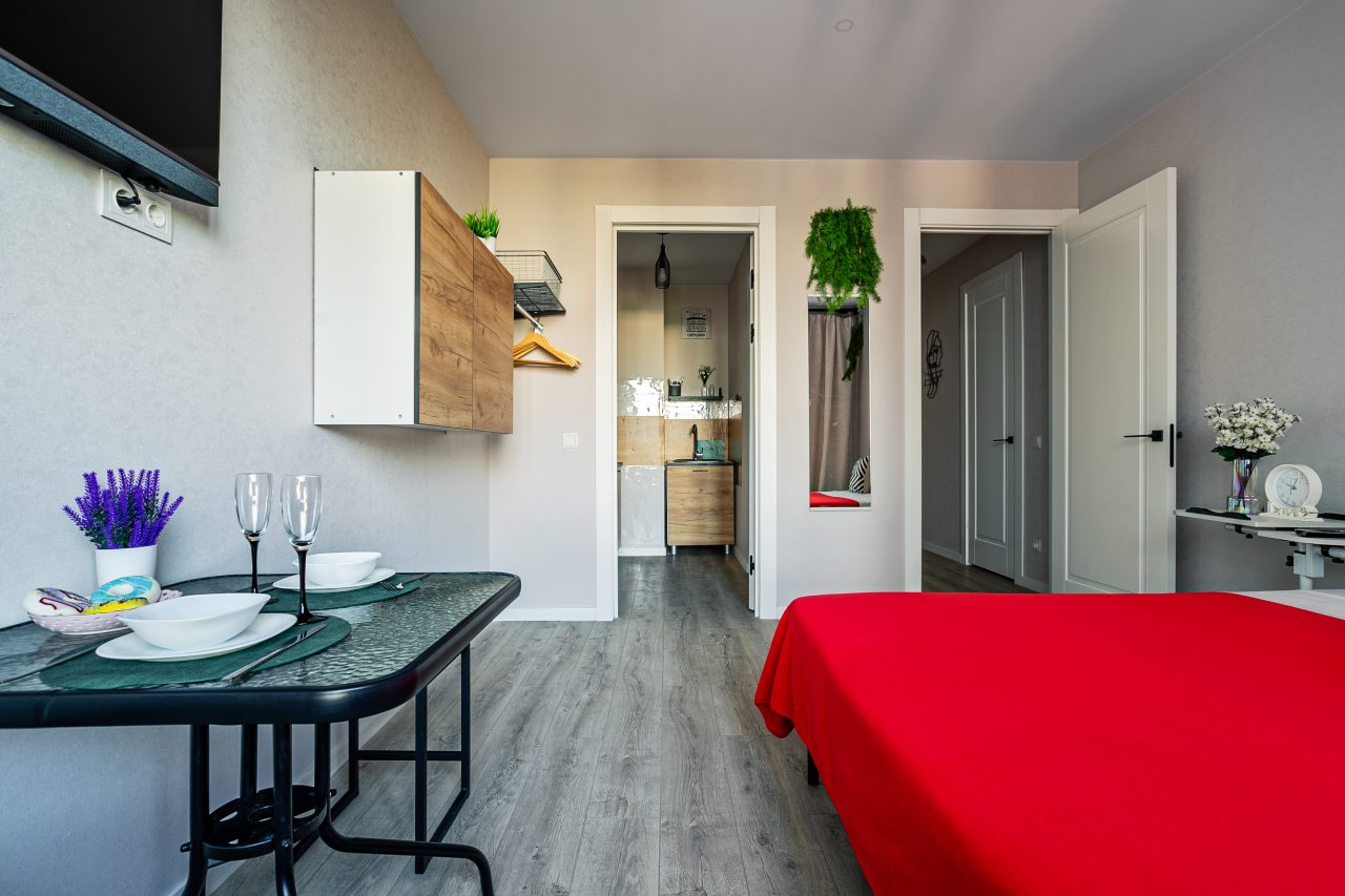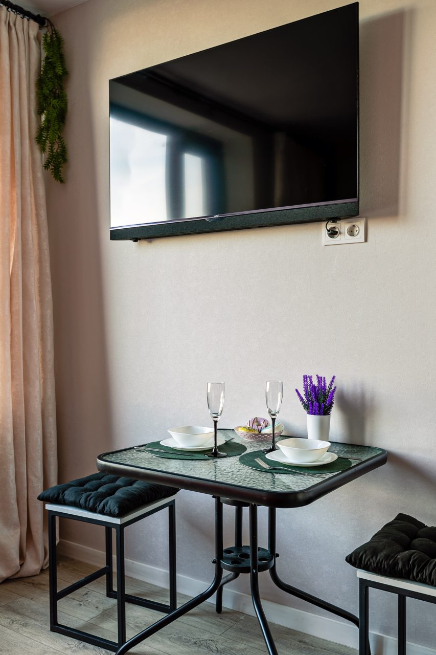 Апартаменты радуют своей чистотой и простором. Внутри тихо и спокойно, можно расслабиться после насыщенного дня. Интерьер нейтральный, что делает обстановку универсальной для любого гостя. Окна открываются легко, проветривание не вызывает проблем. Вечером атмосфера внутри располагает к отдыху. Здесь комфортно находиться как семье, так и одному человеку.