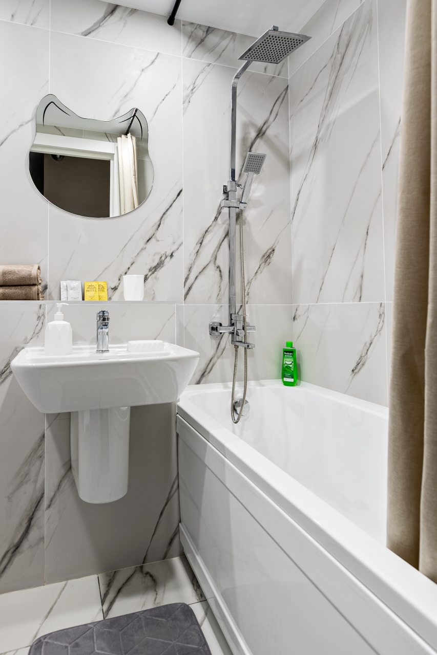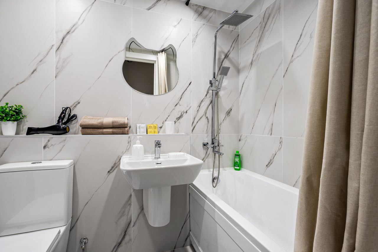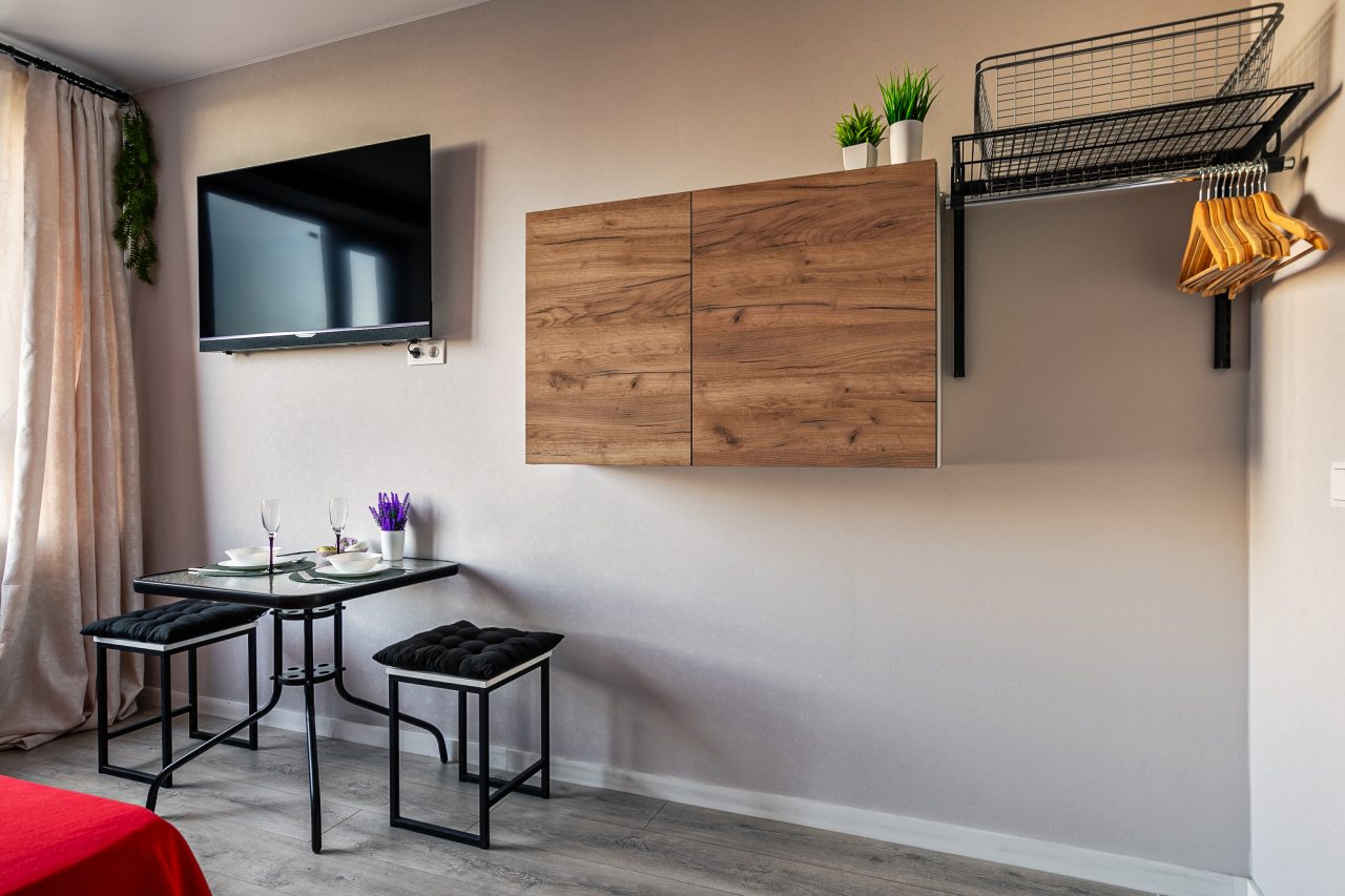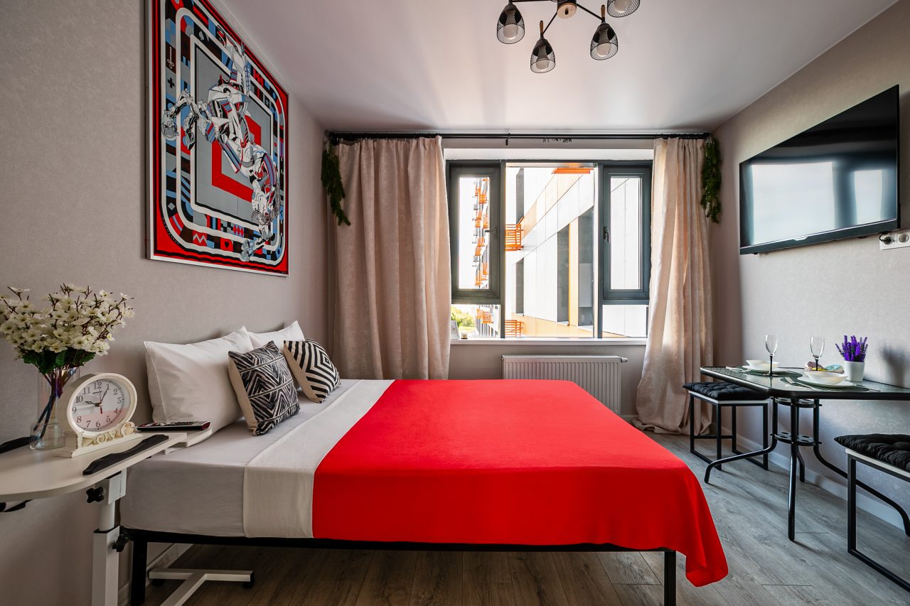 Апартаменты радуют своей чистотой и простором. Внутри тихо и спокойно, можно расслабиться после насыщенного дня. Интерьер нейтральный, что делает обстановку универсальной для любого гостя. Окна открываются легко, проветривание не вызывает проблем. Вечером атмосфера внутри располагает к отдыху. Здесь комфортно находиться как семье, так и одному человеку.