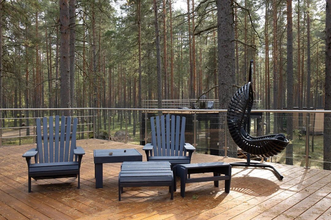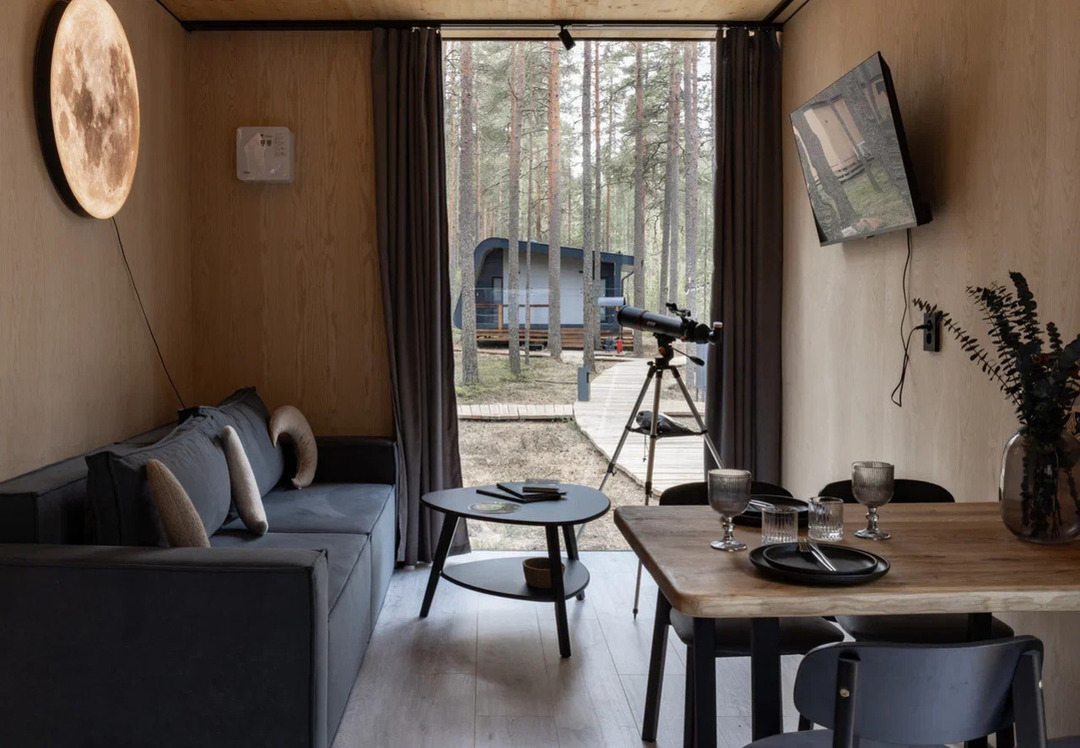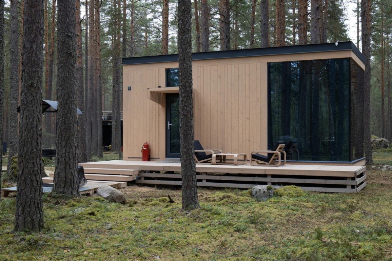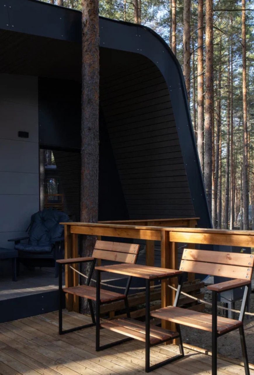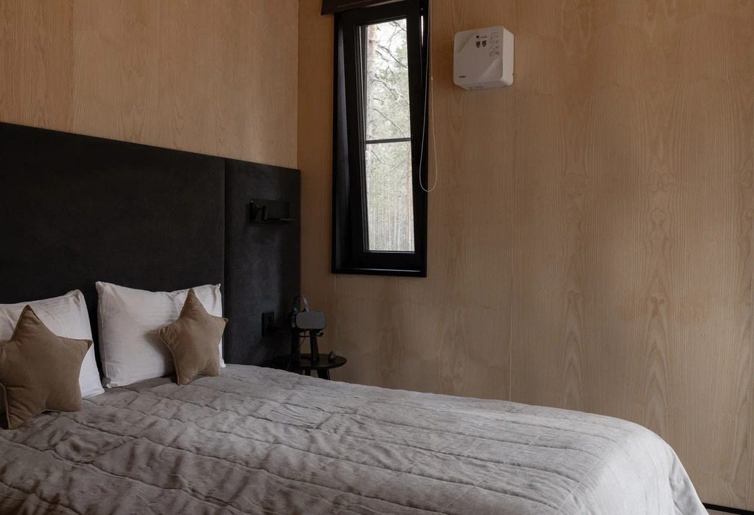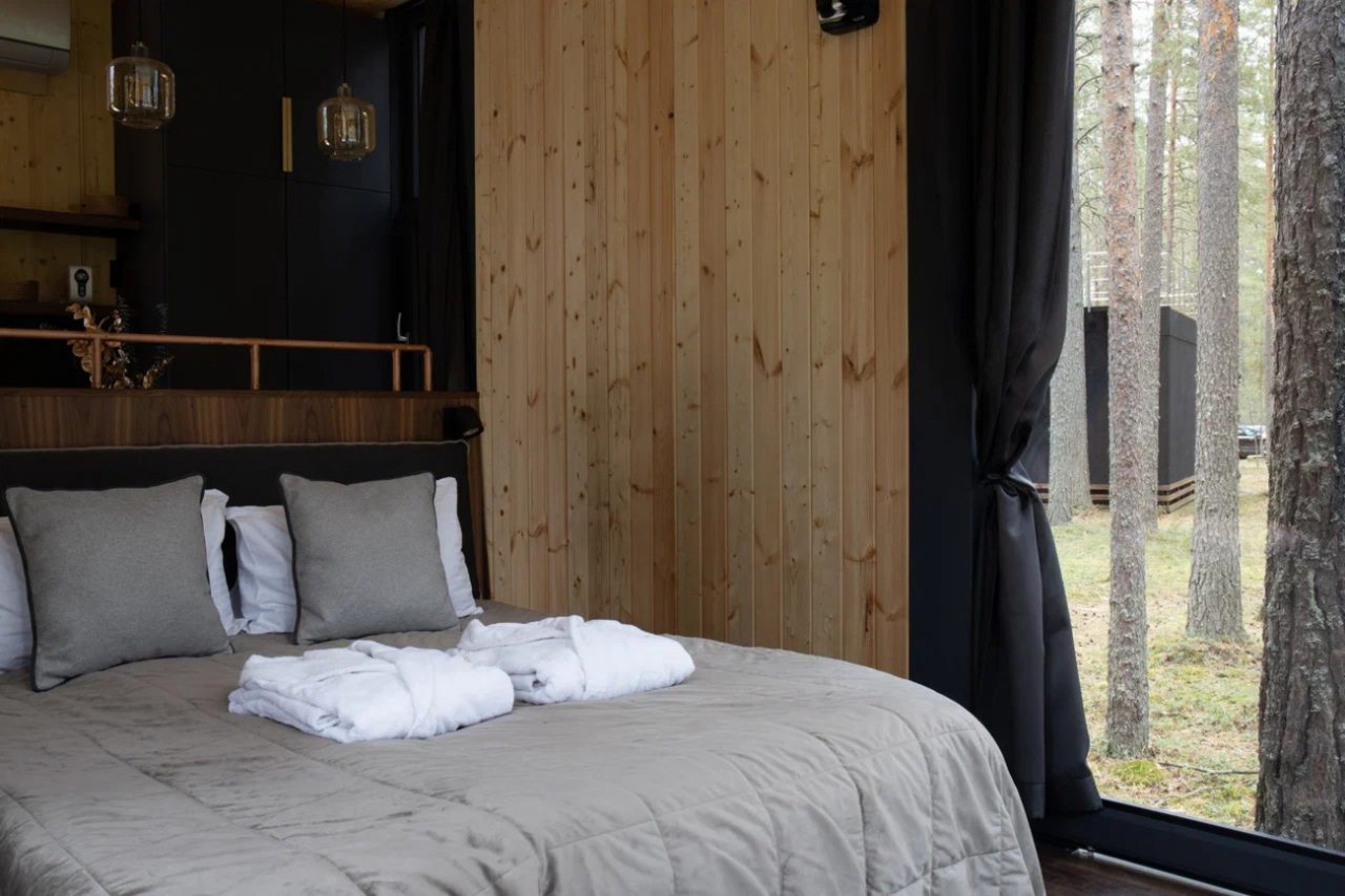Загородный отель предоставляет для размещения двухместные домики типа Полулюкс. Каждый дом выполнен в современном стиле и оборудован мебелью и техникой: двуспальная кровать, небольшой обеденный столик, полки для книг и личных вещей, кондиционер, ванная комната. Из панорамных окон открывается вид на сосны, которые окружают территорию, создавая чудесный пейзаж.