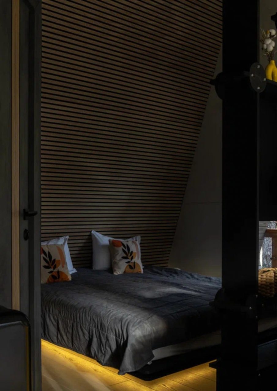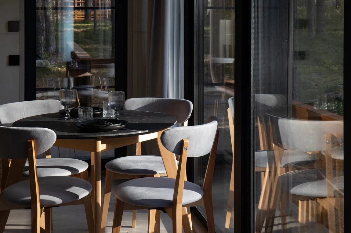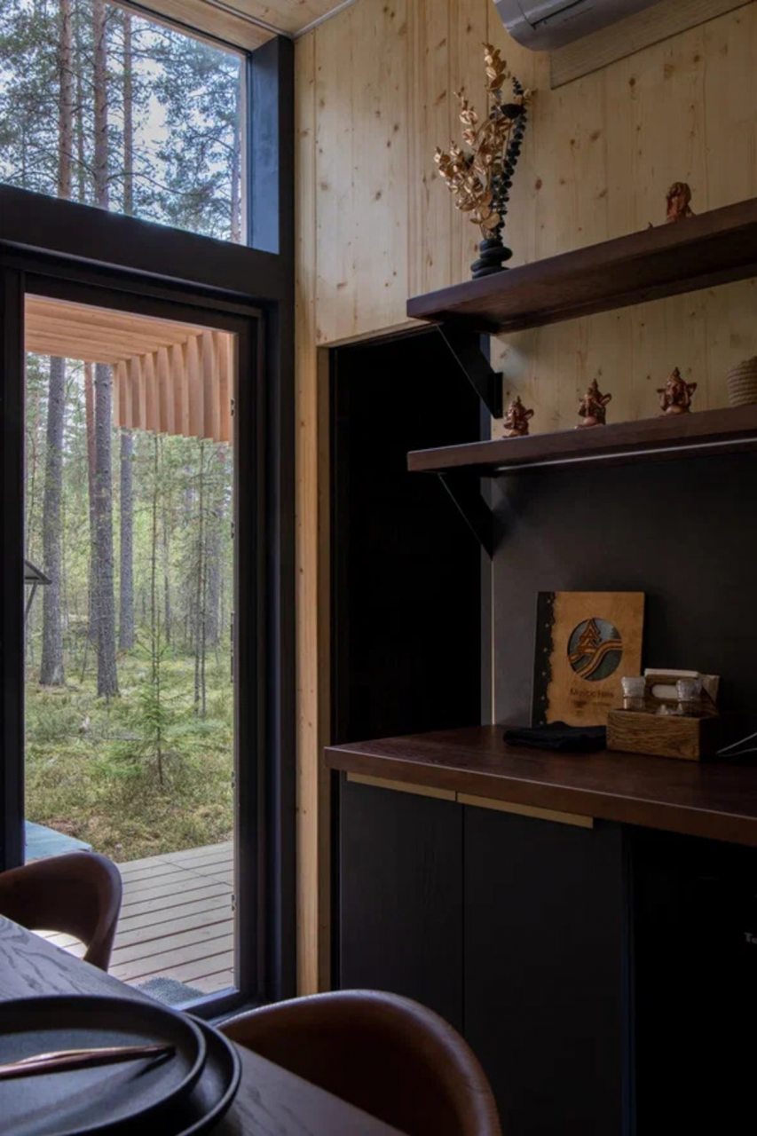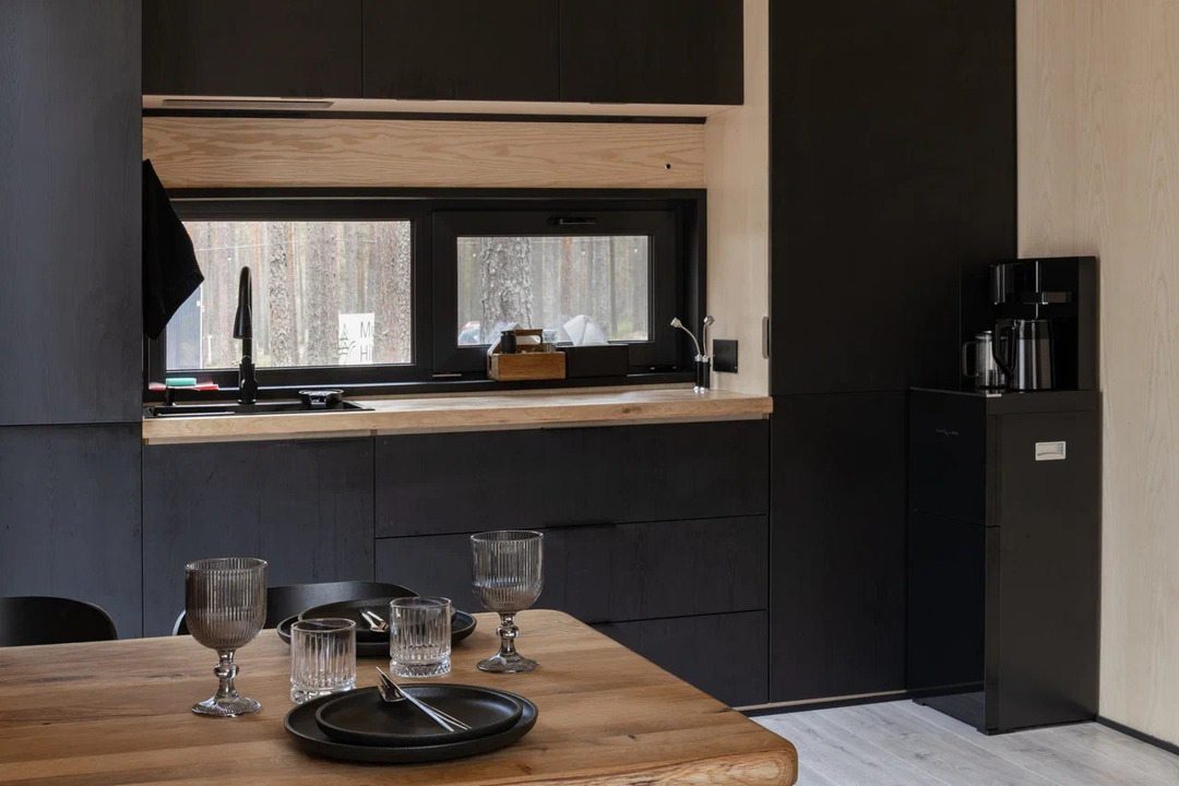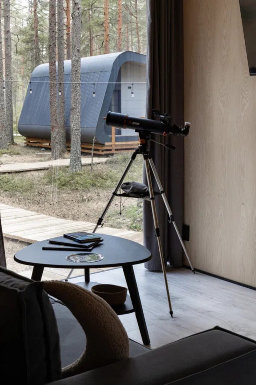 Загородный отель предоставляет для размещения двухместные домики типа Полулюкс. Каждый дом выполнен в современном стиле и оборудован мебелью и техникой: двуспальная кровать, небольшой обеденный столик, полки для книг и личных вещей, кондиционер, ванная комната. Из панорамных окон открывается вид на сосны, которые окружают территорию, создавая чудесный пейзаж.