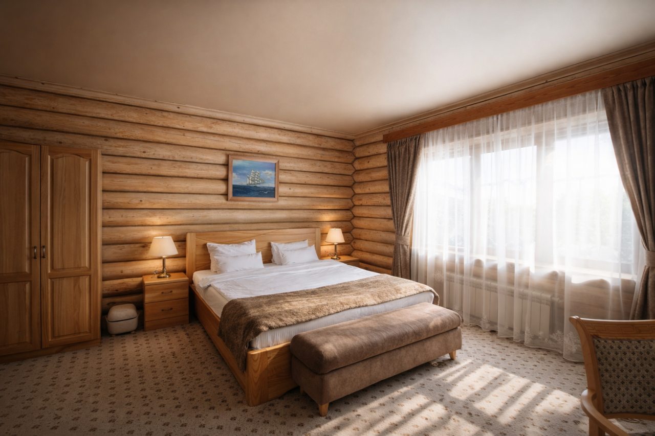 Для размещения доступны 16 комфортабельных домов-срубов и уютные номера разных категорий в эко-отеле. Гостей ждут светлые деревянные интерьеры, ванная комната с косметическими и банными принадлежностями, система кондиционирования, телевизор, Wi-Fi.