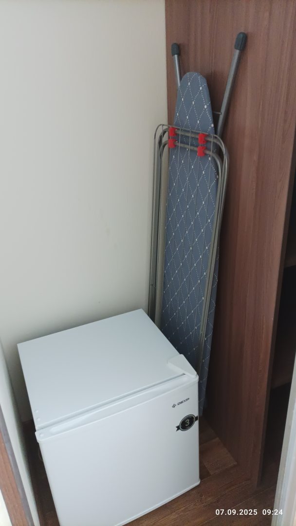 В номере есть всё необходимое для проживания: чайник, микроволновка, холодильник, утюг, фен, гладильная доска. В нашем номере даже была стиральная машина, ну мы не пользовались, не было необходимости. Из посуды минимальный набор. Постель чистая, белоснежная. В общем отель не плохой, ну нужны доработки. Самое главное, что есть всё необходимое.