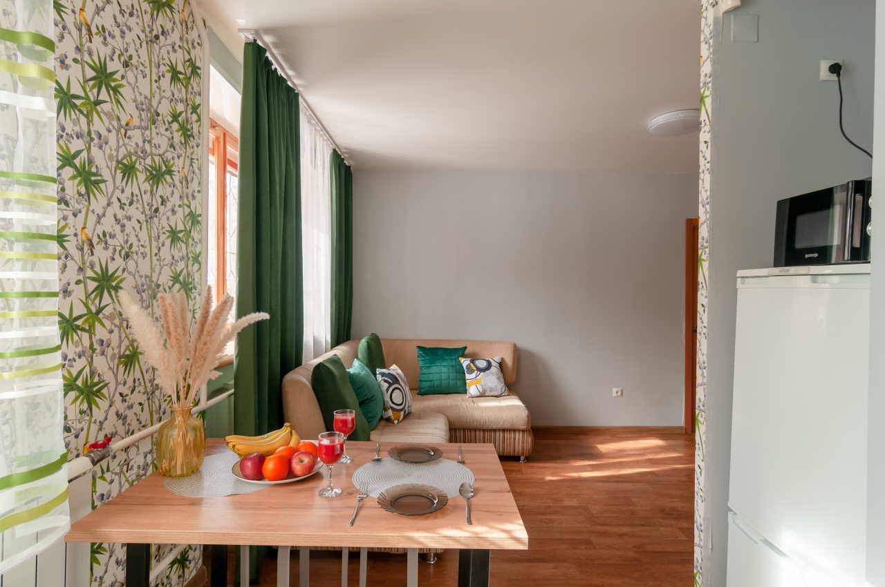 Семейный формат этих апартаментов оказался весьма удачным — удобно, просторно, нет ощущения тесноты. Всё чисто, ухожено, ничто не раздражает. Район оживлённый, но при этом безопасный, можно без тревоги выходить поздно вечером. Внутри тепло, приятный текстиль и нейтральные цвета. Есть бытовые мелочи, которые часто забывают — за это отдельный плюс. Заселение контактное, но быстрое.