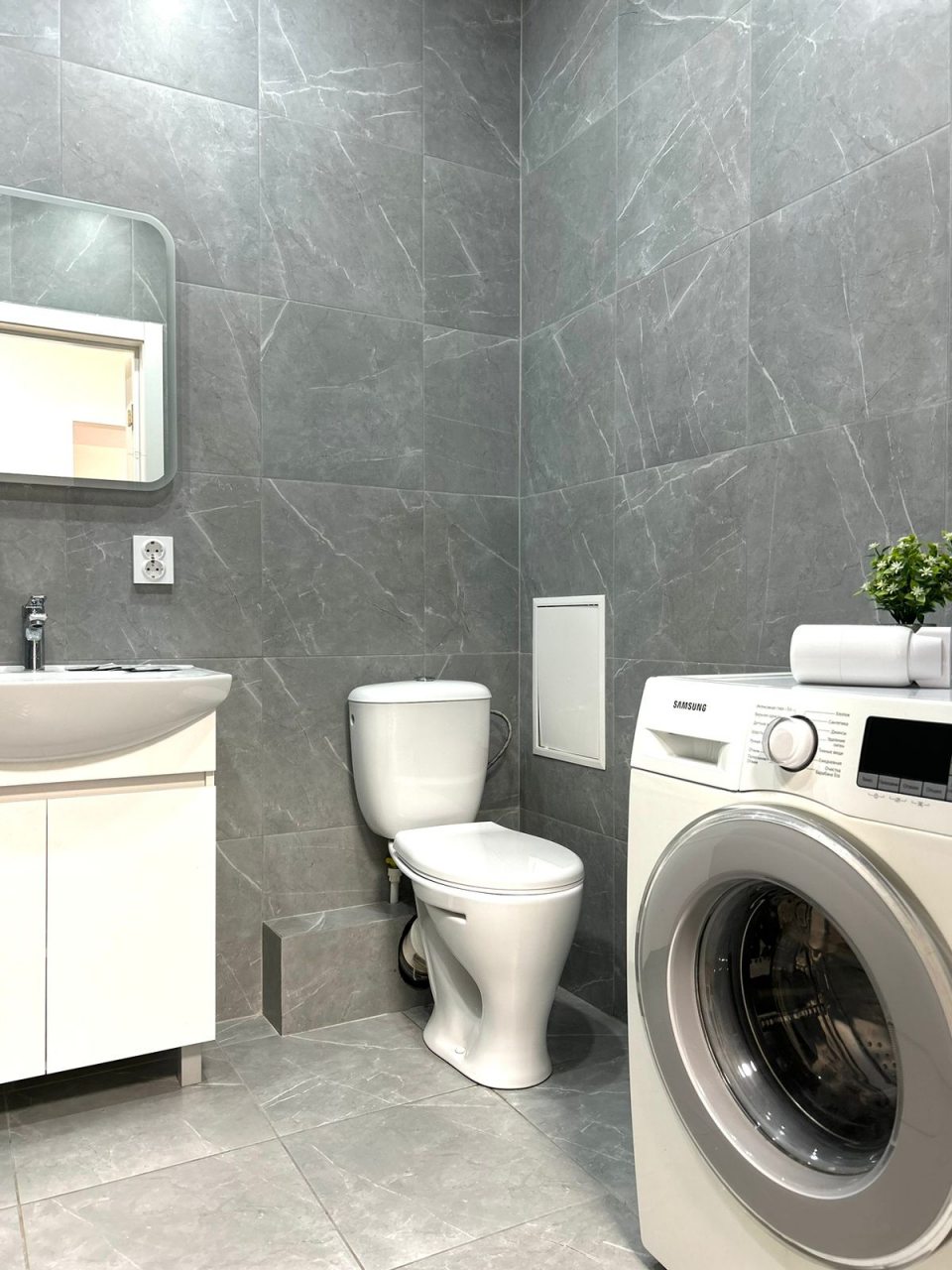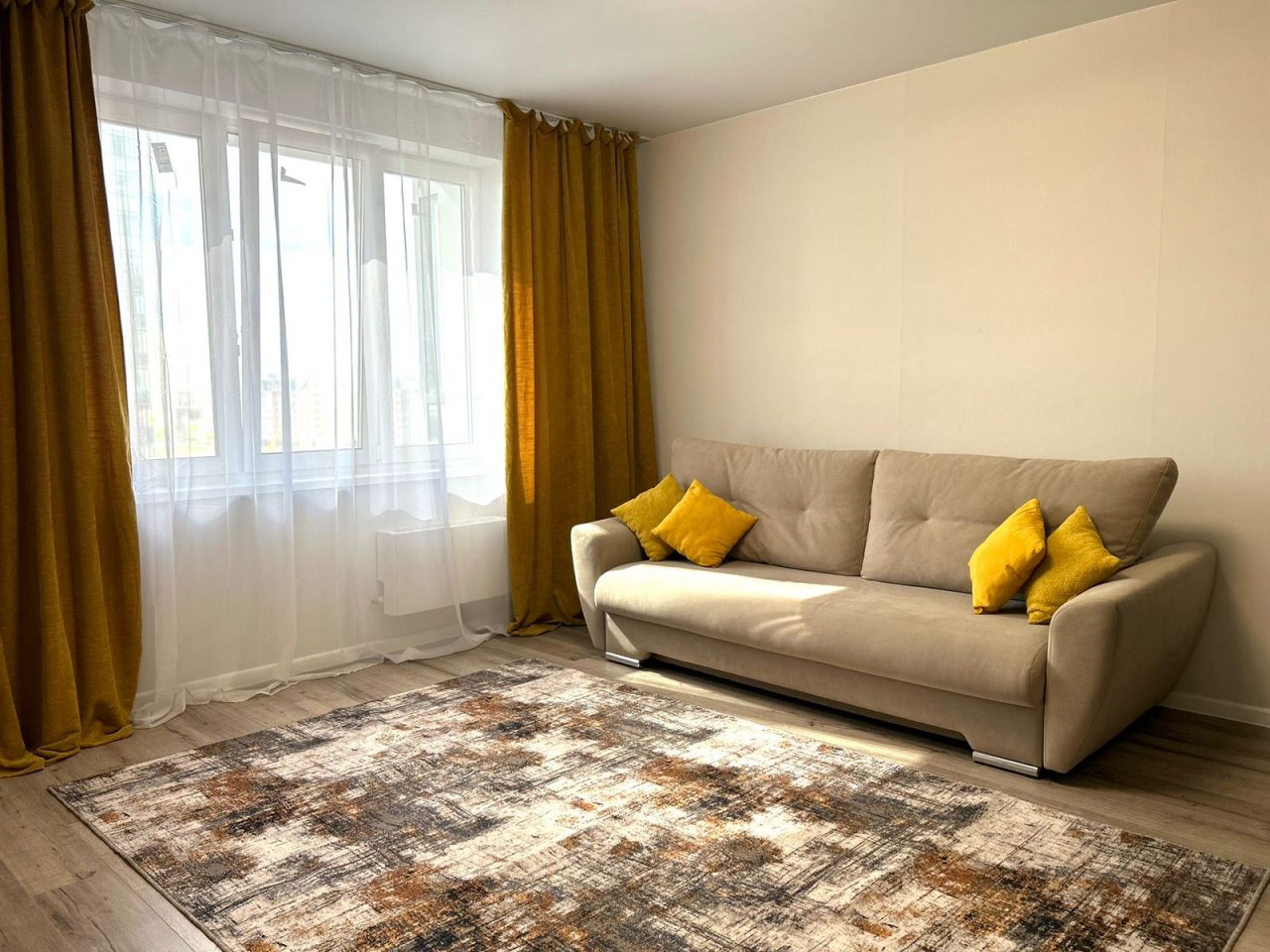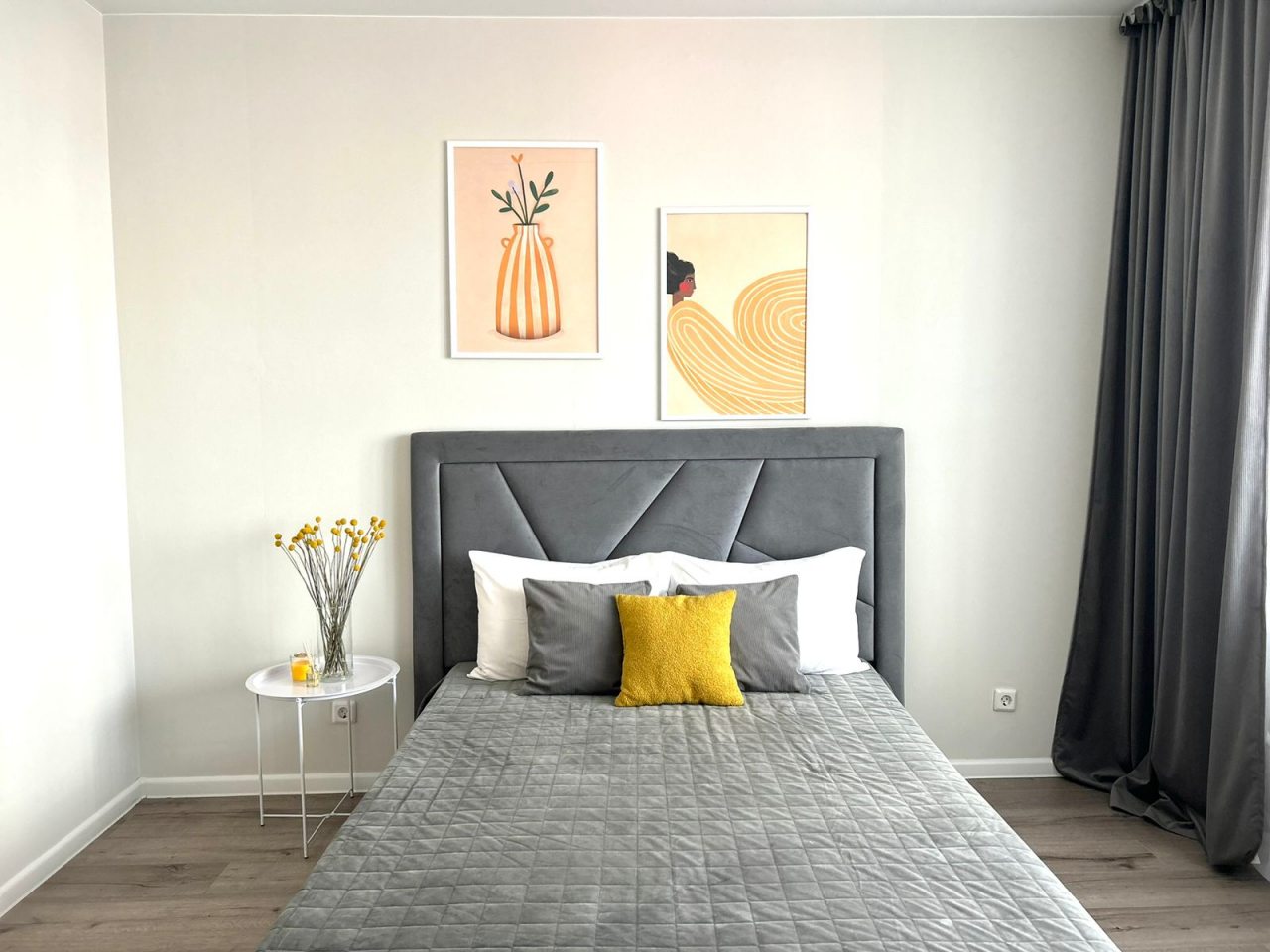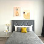 Апартаменты подходят для размещения семейной пары или индивидуального путешественника. Они оформлены в современном стиле и оснащены мебелью и техникой: кровать с удобным матрасом, мягкий диван, телевизор. При необходимости можно воспользоваться утюгом для глажки одежды.