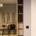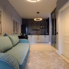 Внутри вас ожидает не только стильный дизайн, но и двуспальная кровать с качественным матрасом, плотные шторы, удобный диван напротив телевизора, шкаф с большим зеркалом, санузел со стандартным набором сантехники.