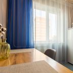 Апартаменты выполнены в современном стиле и приятных теплых оттенках, благодаря которым создается атмосфера уюта и спокойствия. В оснащение входит: удобное спальное место, прикроватные тумбочки, мягкий диван, телевизор, вместительный шкаф. В ванной комнате установлена стиральная машинка, имеются средства гигиены и белоснежные полотенца. При желании можно воспользоваться гладильными принадлежностями.