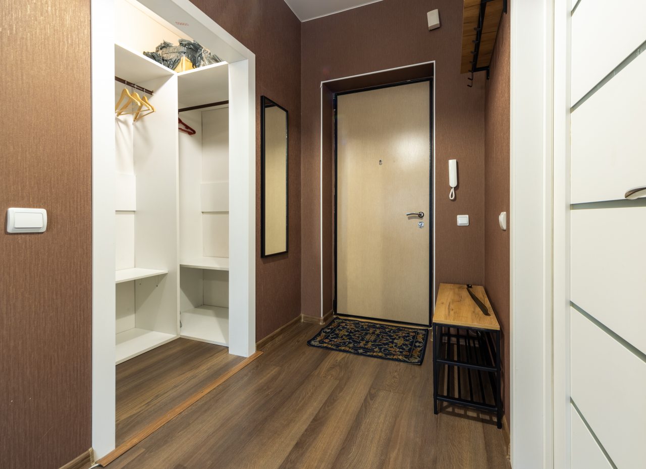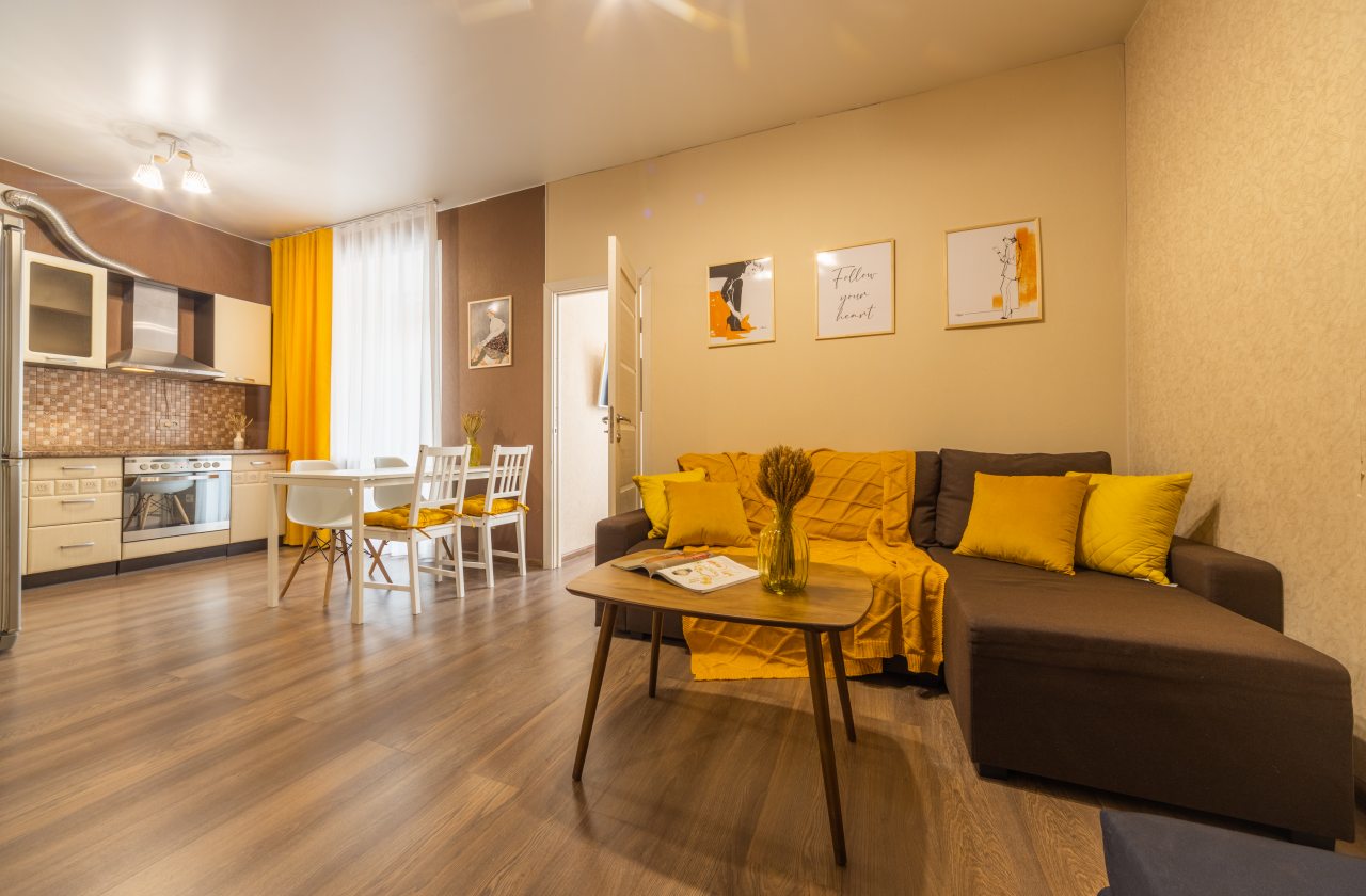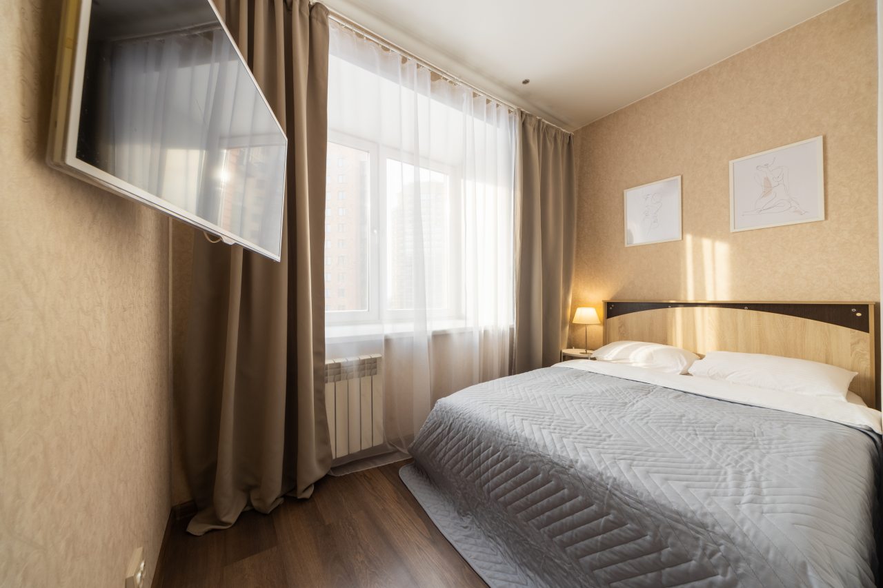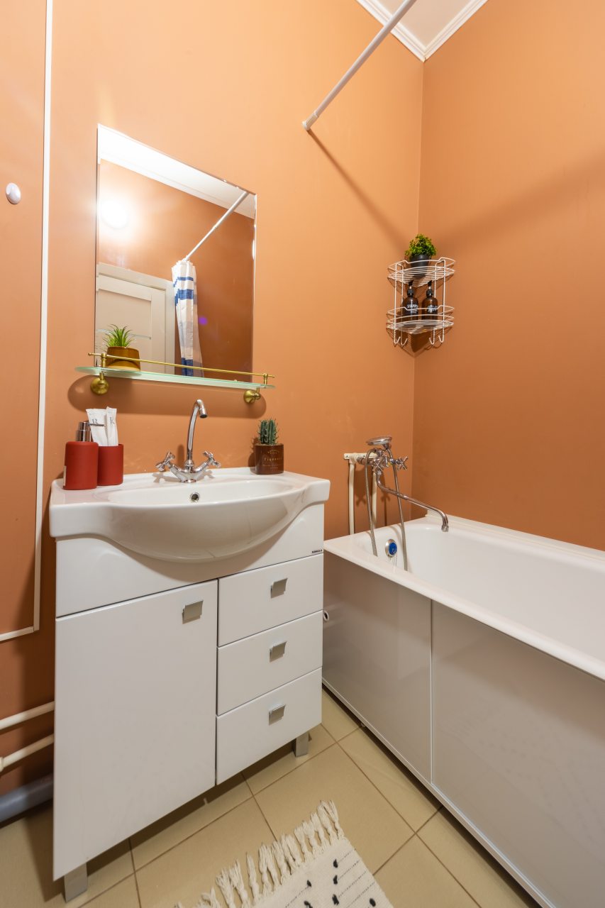 Большая и комфортная для сна кровать, мягкий диван, телевизор, балкон с панорамным остеклением, набор полотенец, вместительная гардеробная, стиральная машина, полноценная ванна, гигиенические принадлежности — все это вы обнаружите внутри апартаментов.