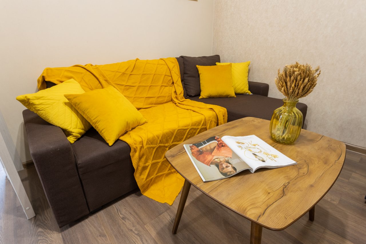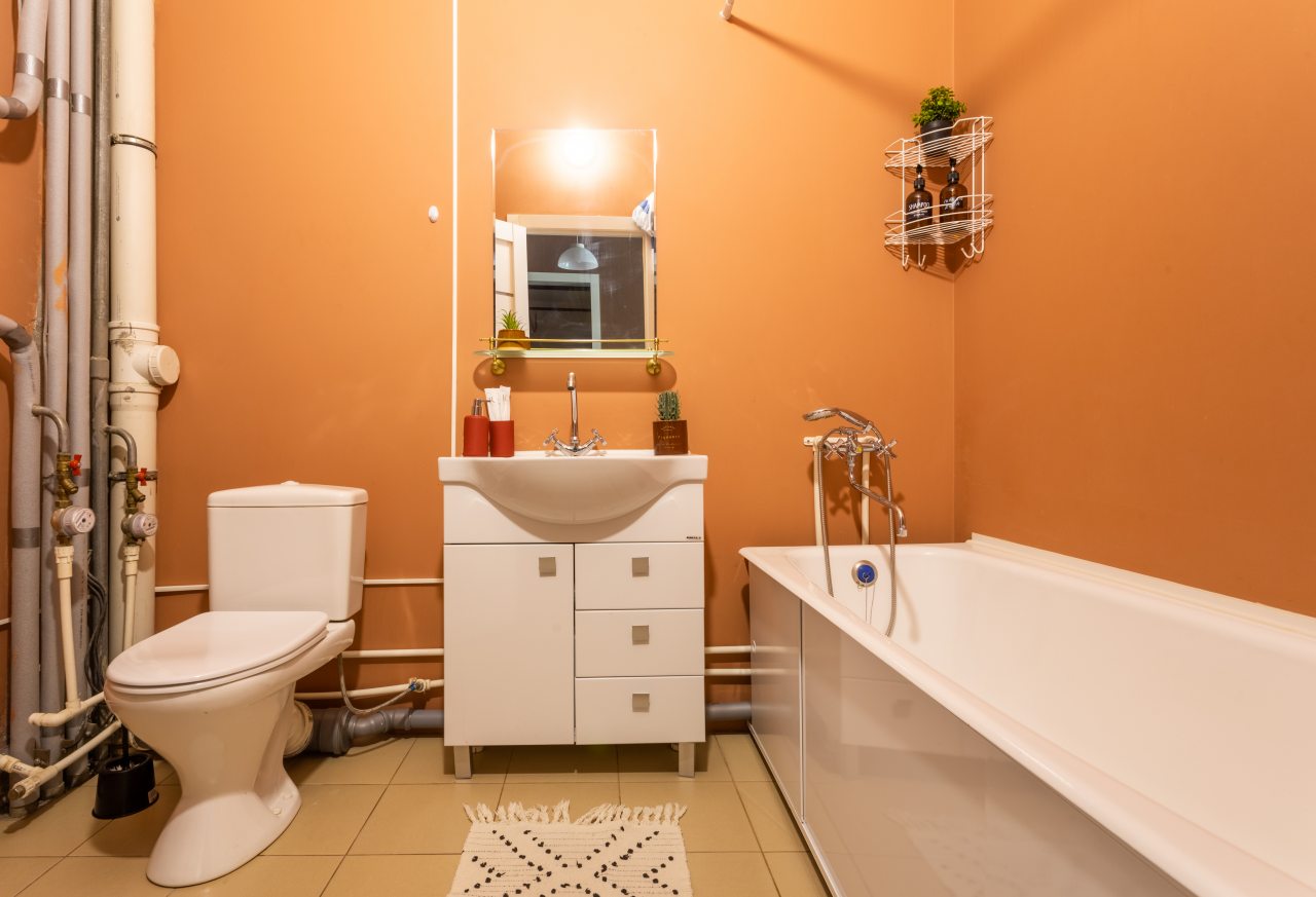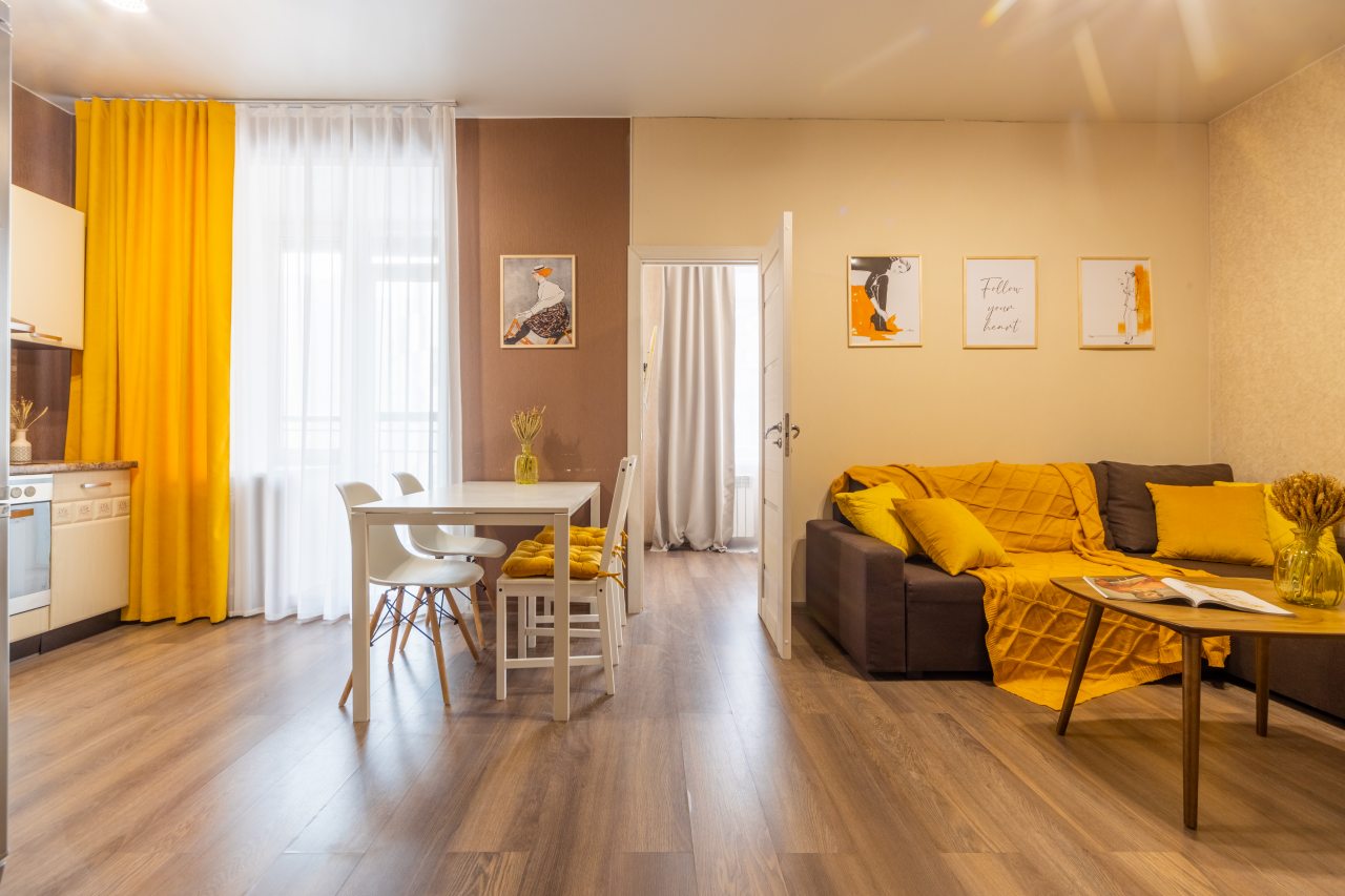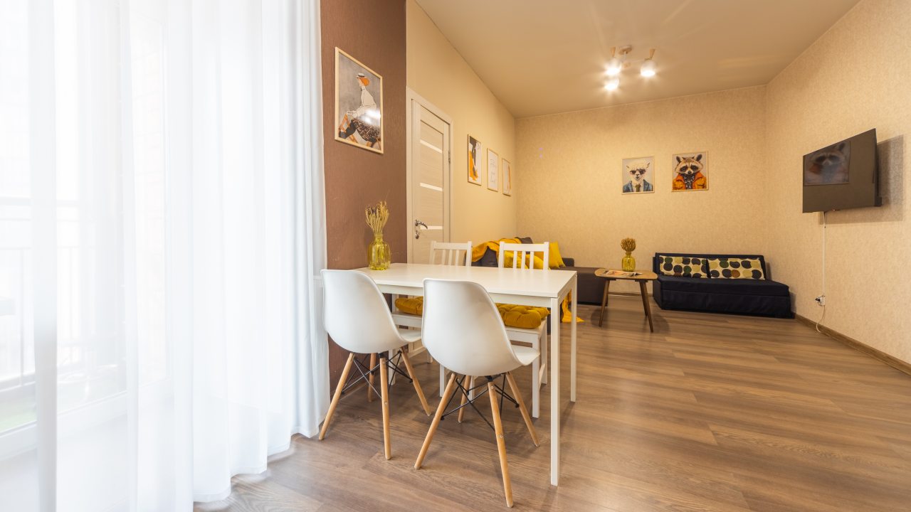 Большая и комфортная для сна кровать, мягкий диван, телевизор, балкон с панорамным остеклением, набор полотенец, вместительная гардеробная, стиральная машина, полноценная ванна, гигиенические принадлежности — все это вы обнаружите внутри апартаментов.
