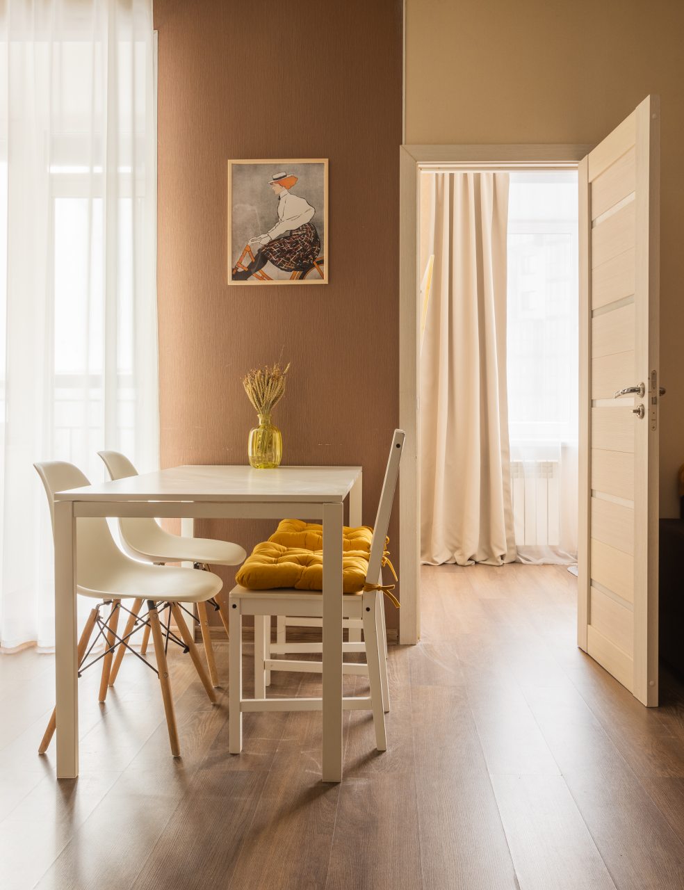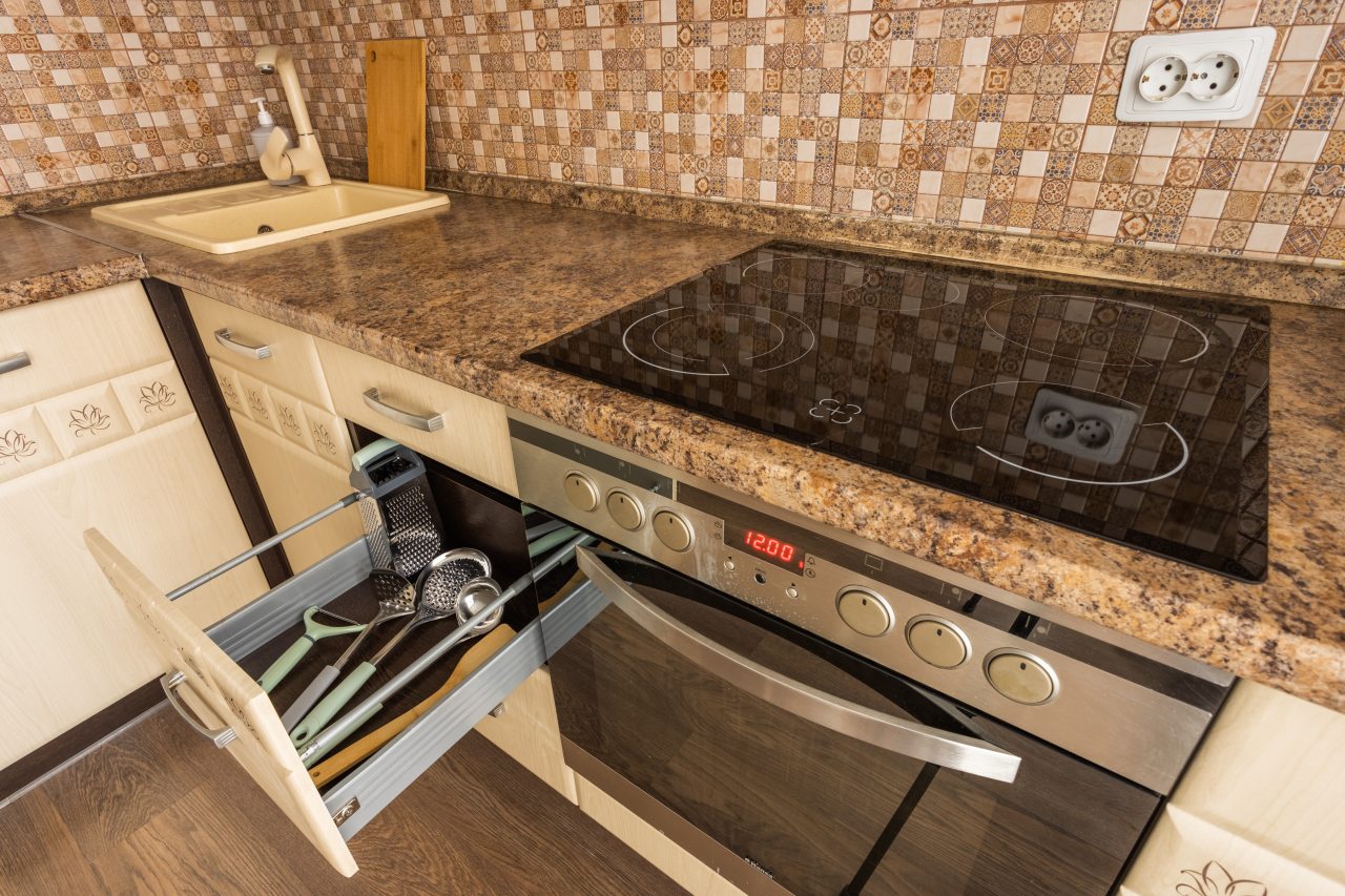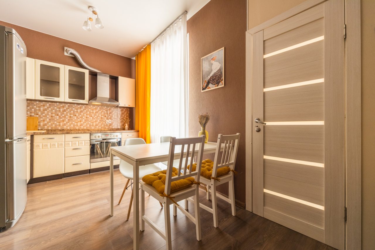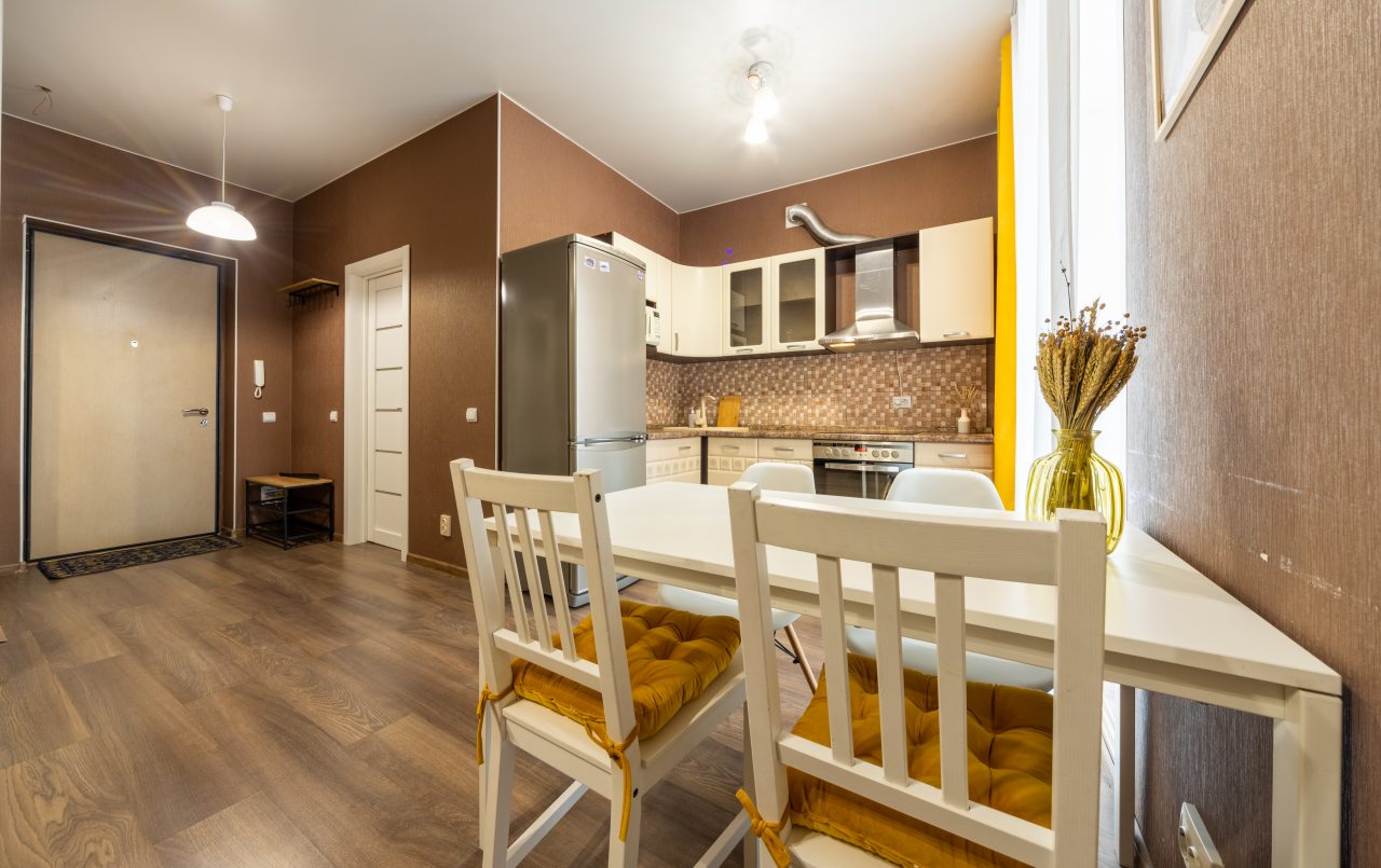 Кухонная зона позволит вам готовить любимые домашние блюда, так как в наличии уютная обеденная зона, духовой шкаф, плита, СВЧ-печь, чайник, холодильник.
