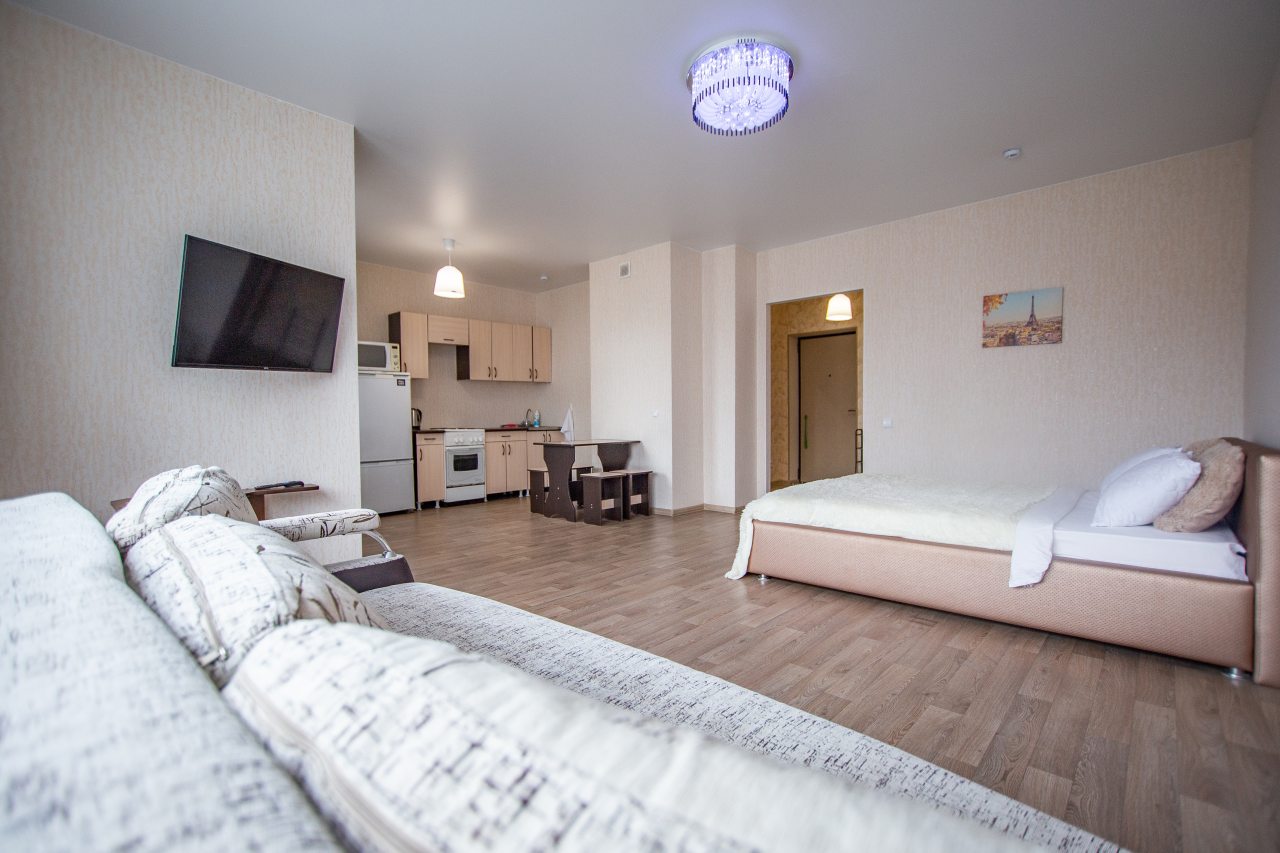 «На Шахтёров 66» — это светлые апартаменты, расположившиеся в Красноярске, рядом с торговым центром «Red Sail».