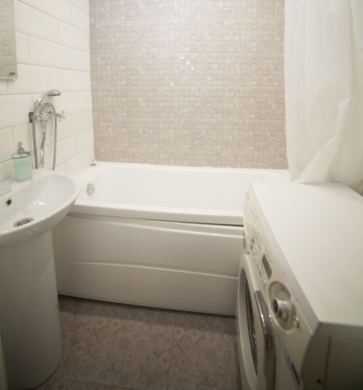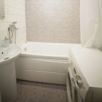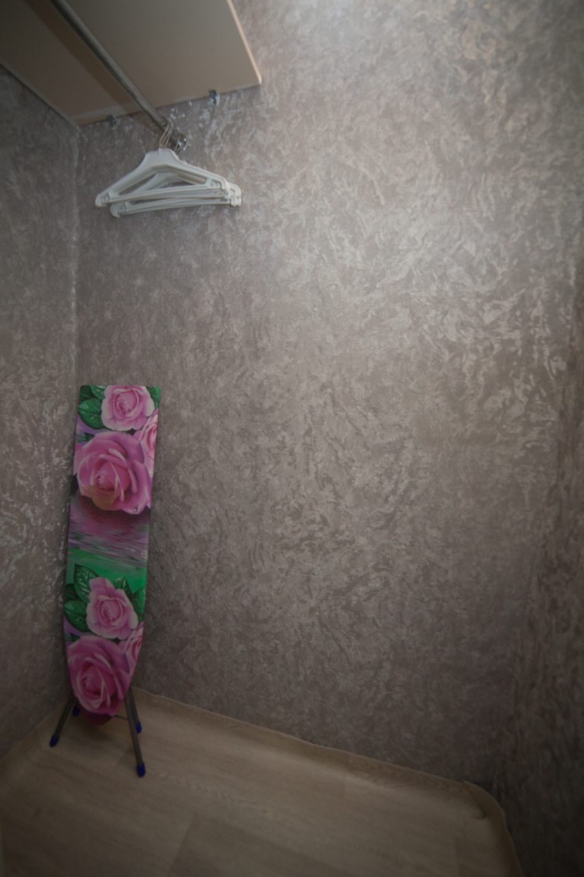 Для качественного отдыха и проживания имеются: большая и удобная двуспальная кровать, телевизор, плотные шторы, вместительная гардеробная, гладильные принадлежности, стиральная машина, полноценная ванна.