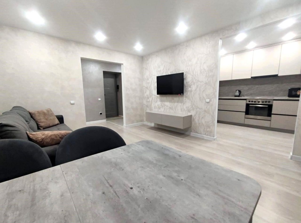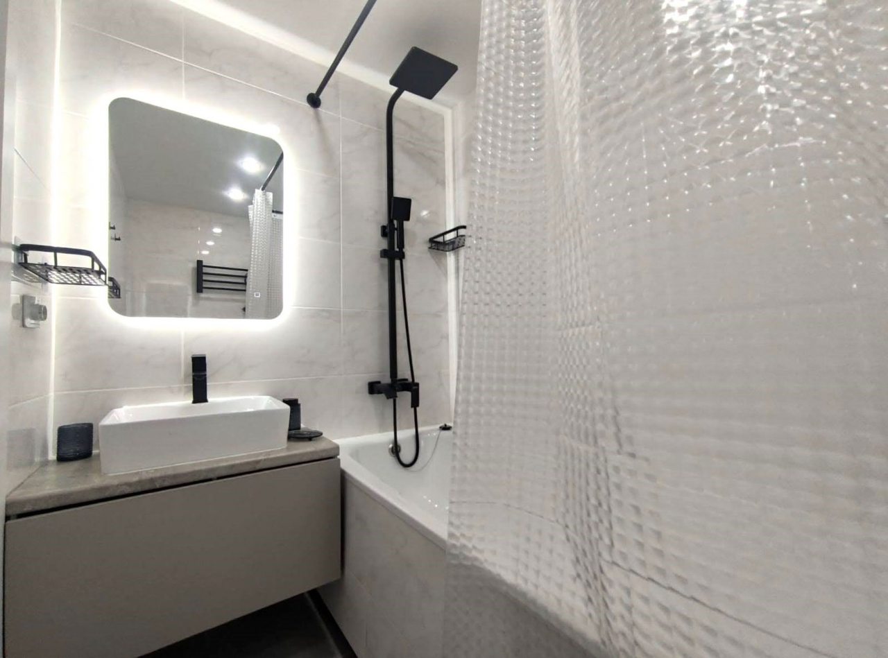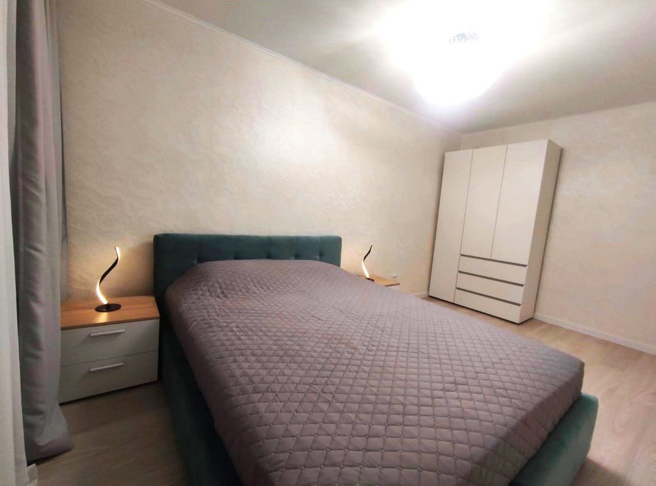 Это отличный вариант для размещения семьей или компанией, так как на площади 60 квадратных метров имеются две удобные двуспальные кровати, вместительный диван с телевизором, плотные шторы для качественного сна, ванная комната со стиральной машиной.