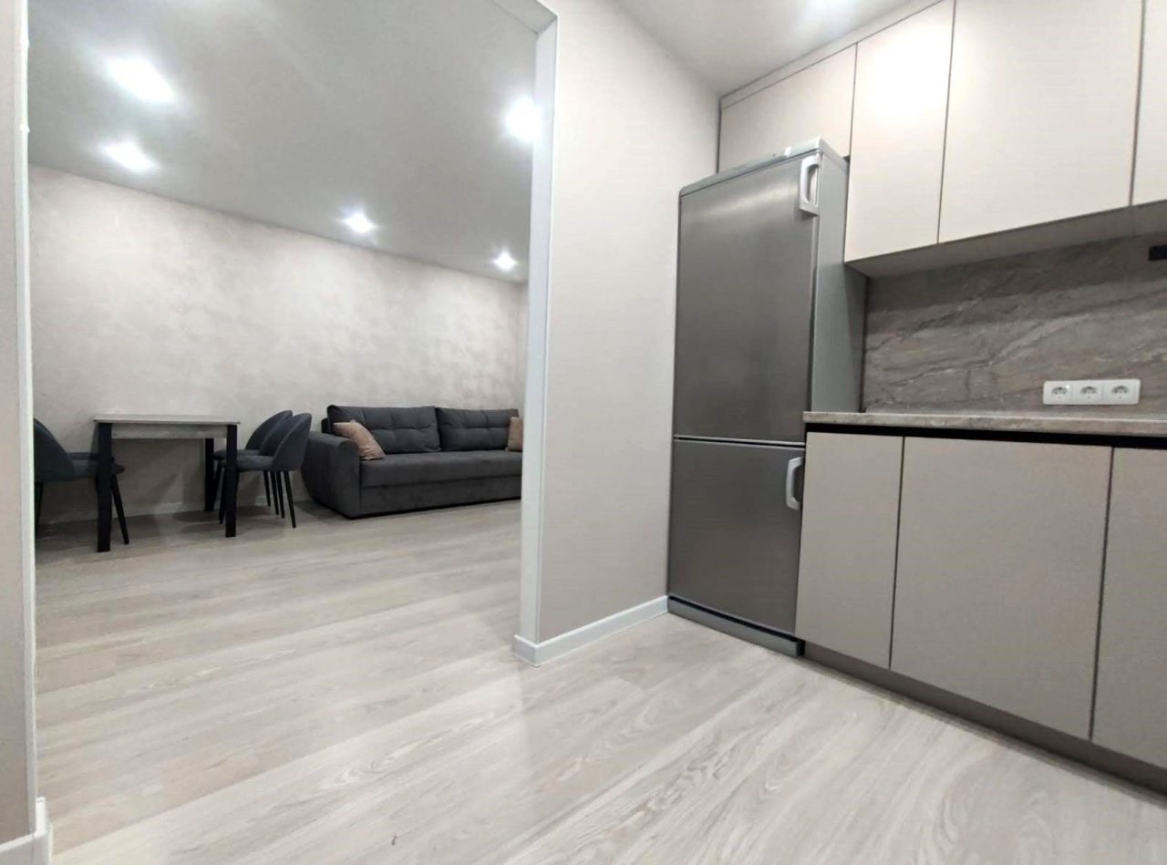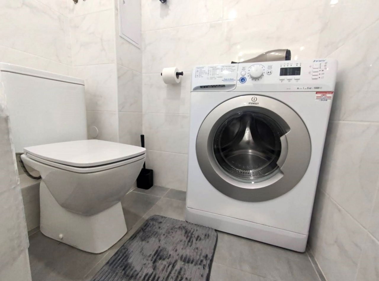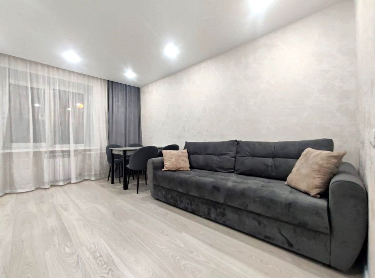 Это отличный вариант для размещения семьей или компанией, так как на площади 60 квадратных метров имеются две удобные двуспальные кровати, вместительный диван с телевизором, плотные шторы для качественного сна, ванная комната со стиральной машиной.