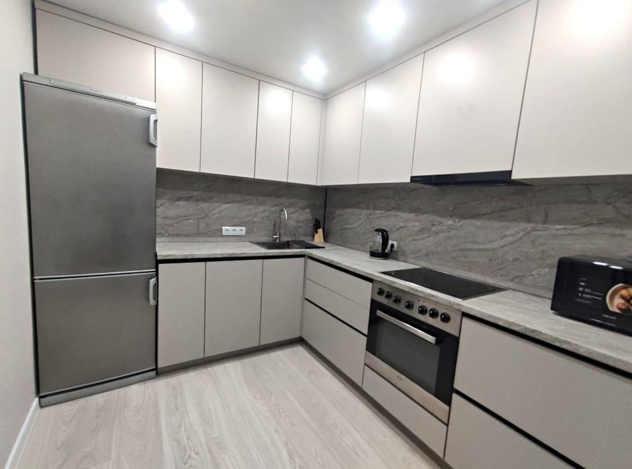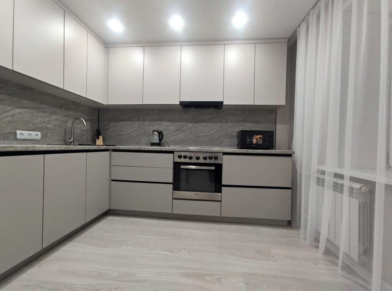 На кухне будет приятно готовить любимые домашние блюда и напитки, так как в наличии духовой шкаф, варочная панель с вытяжкой, чайник, СВЧ, обеденный стол со стульями.