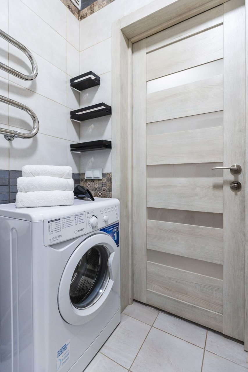 В светлой квартире все оборудовано для удобства гостей: двуспальная кровать и раскладной диван, стиральная машина, телевизор, доступ в интернет, фен, полотенца и средства гигиены.
