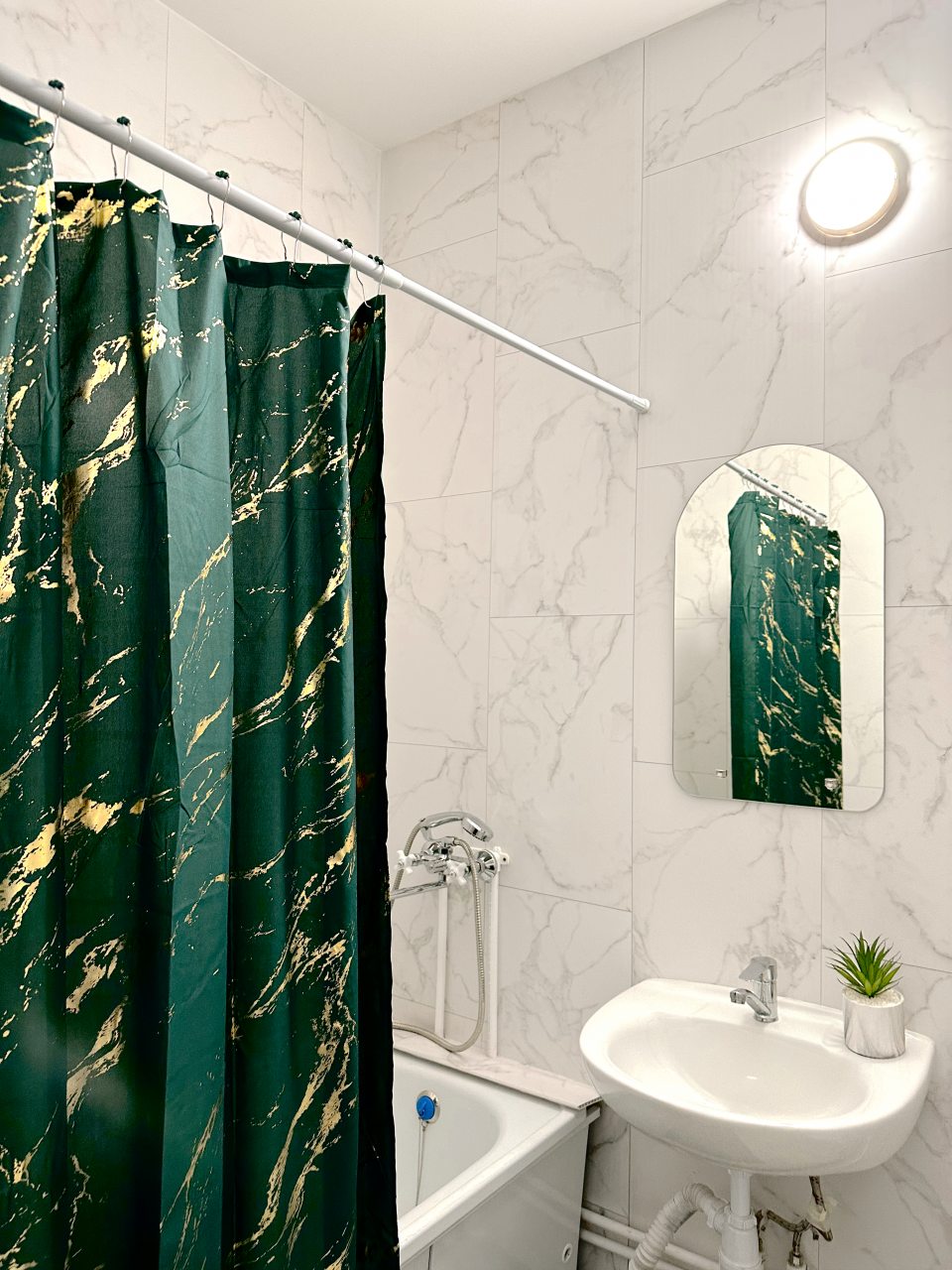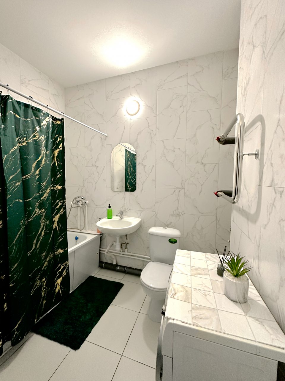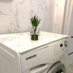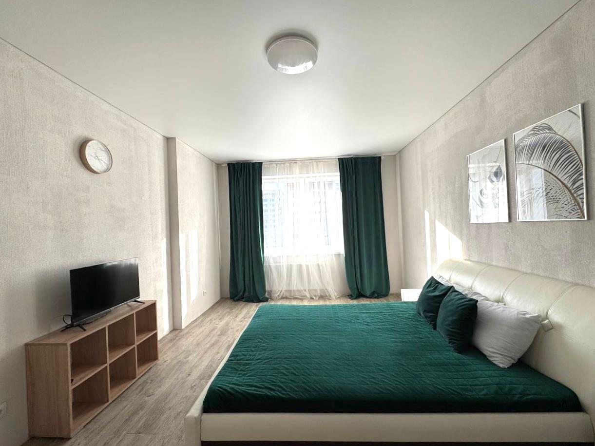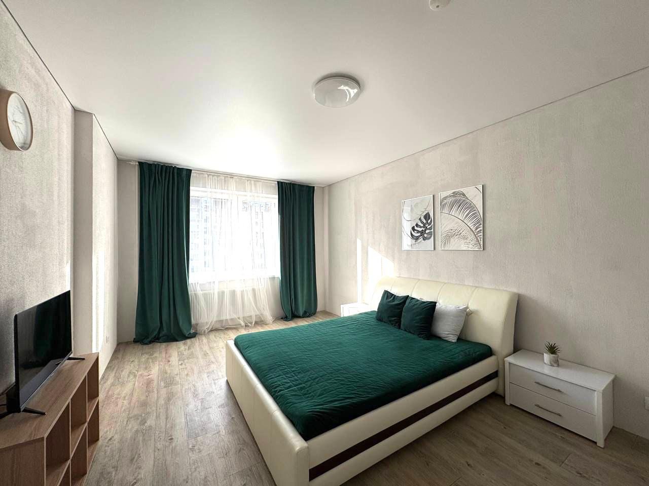 Внутри гостей ожидает удобный и мягкий диван, двуспальная кровать с качественным матрасом, плотные шторы и другая необходимая мебель и техника. В ванной комнате имеется стиральная машина.