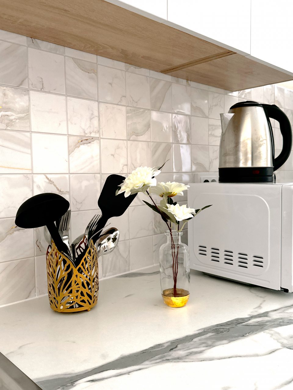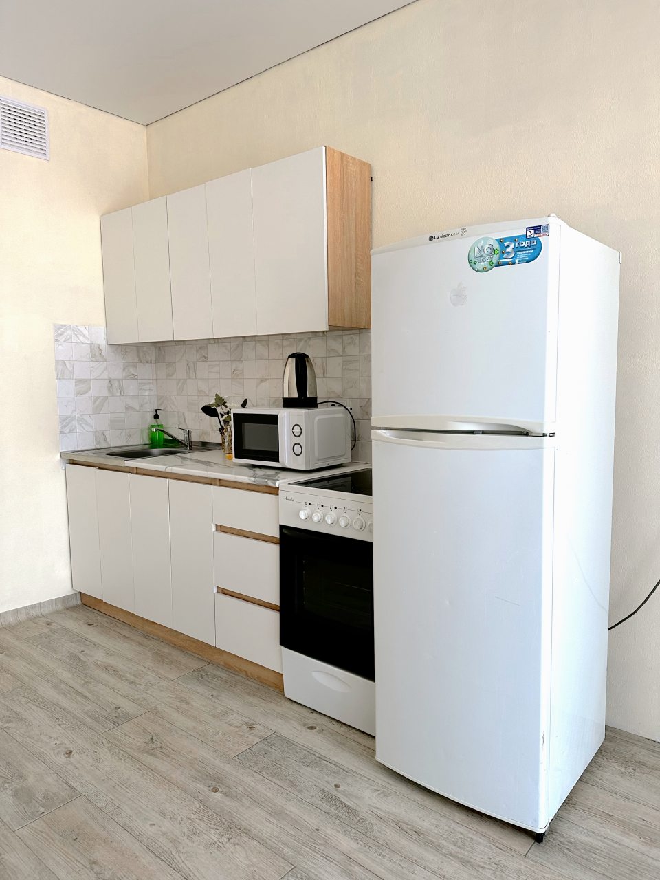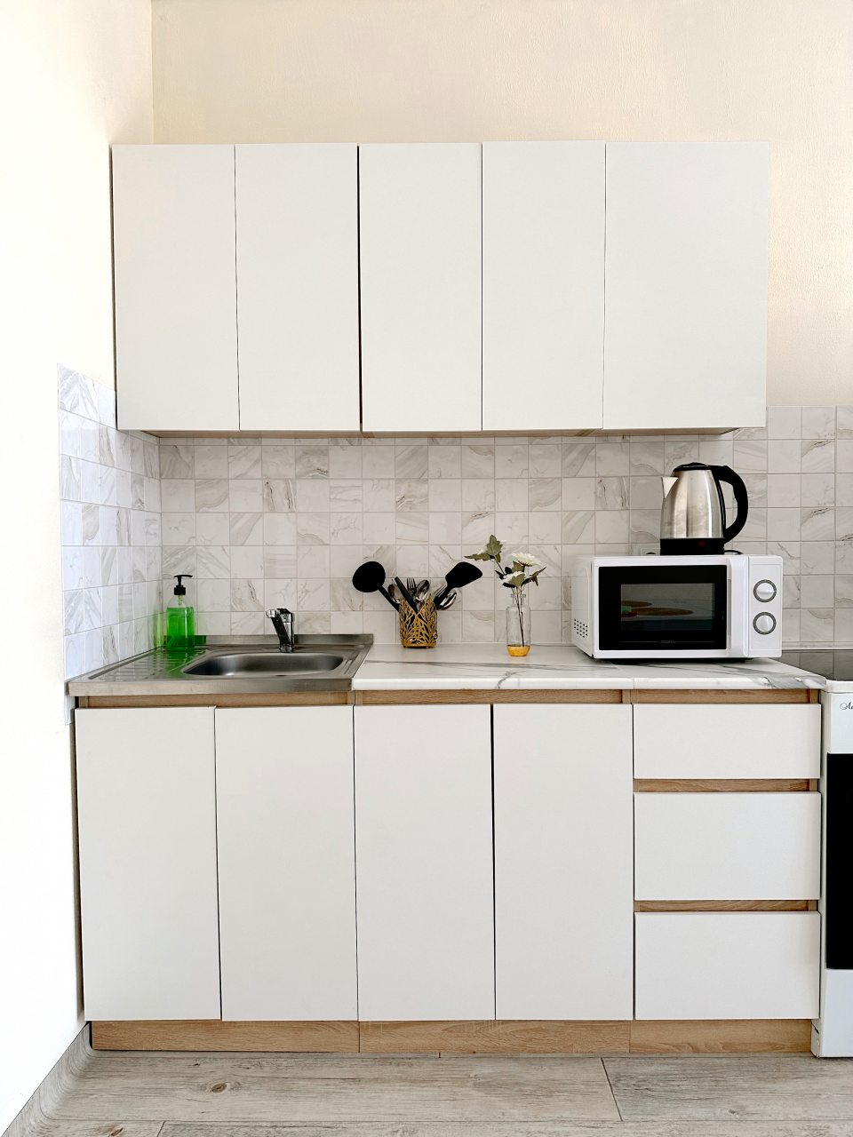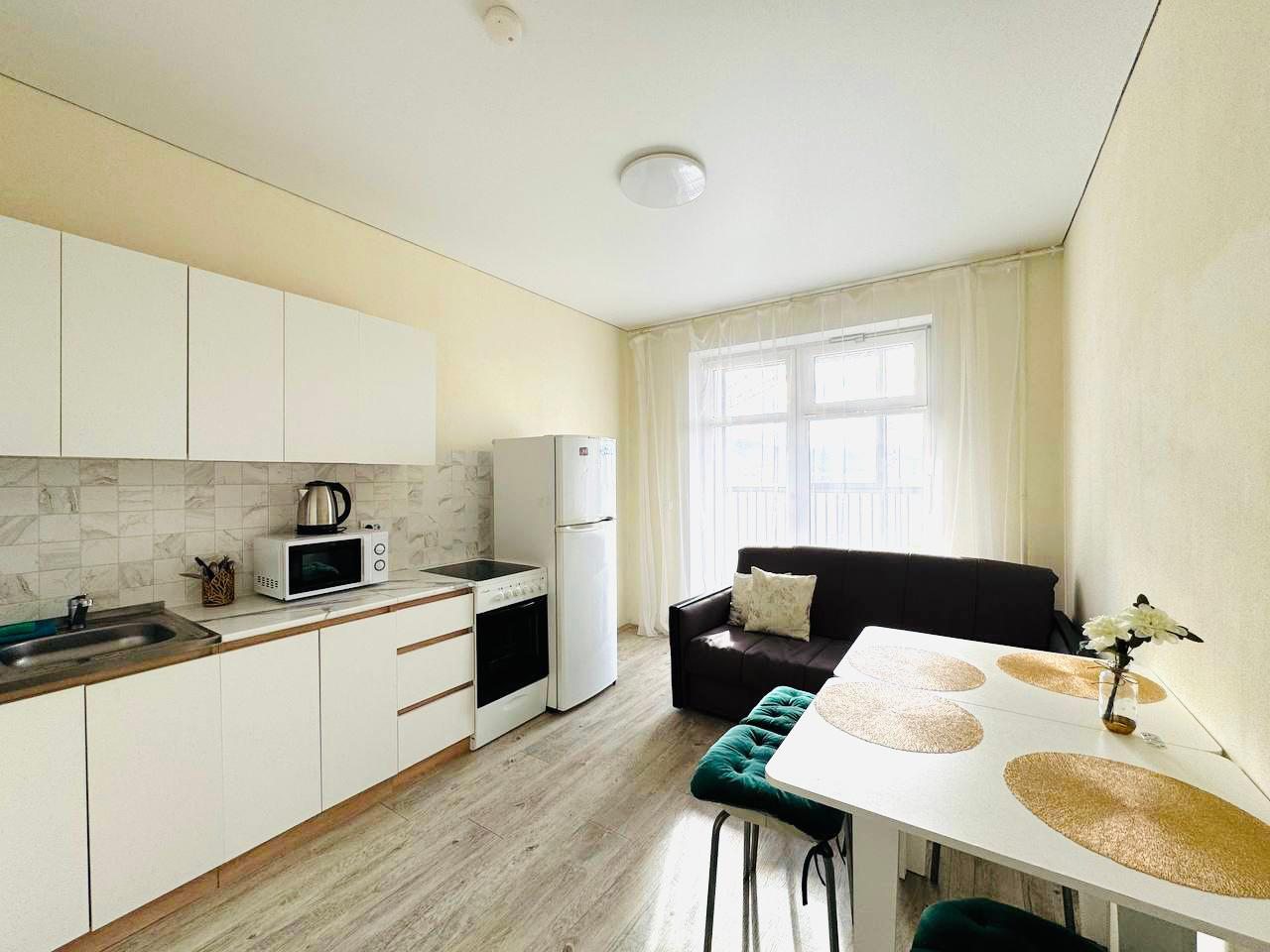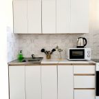 На уютной кухне будет приятно готовить, так как предусмотрено всё: от духового шкафа и плиты до СВЧ и чайника.