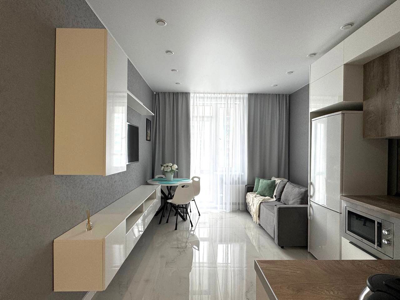 Внутри гостей ожидает удобный и мягкий диван с телевизором, плотные шторы для качественного сна, балкон, различные зоны хранения вещей, санузел с необходимой сантехникой.