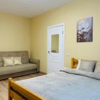 Внутри имеются все удобства для комфортного проживания, в том числе: двуспальная кровать с удобным матрасом, плотные шторы для качественного сна, диван, телевизор, шкаф-купе для вещей, фен, утюг и санузел с необходимой сантехникой.