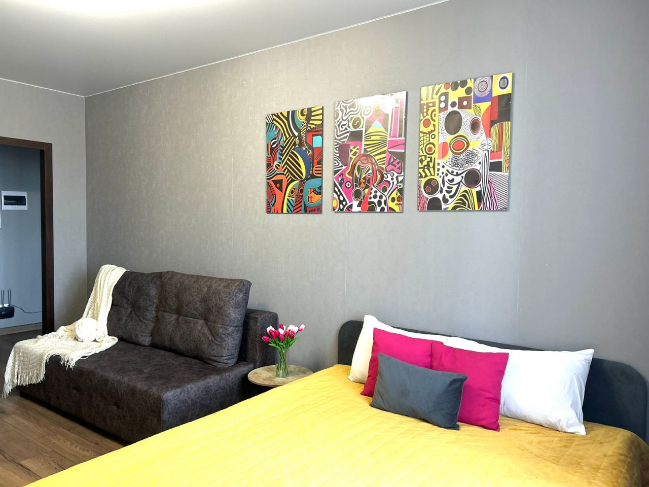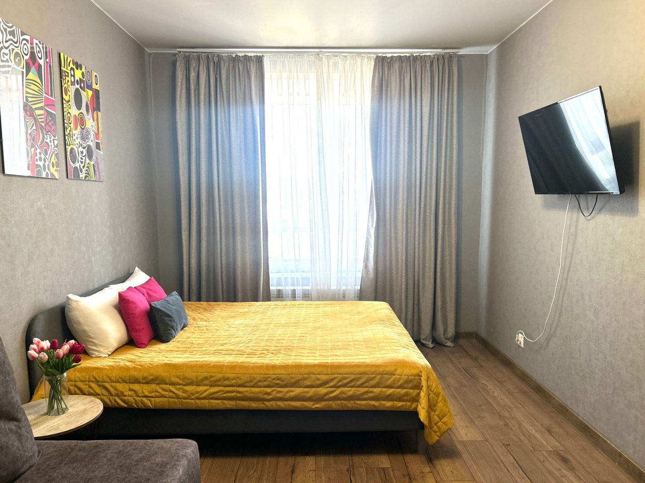 Квартира оснащена необходимыми удобствами: мебелью, спальными местами, ванной комнатой, современной техникой. Также имеется доступ к беспроводной сети интернет.