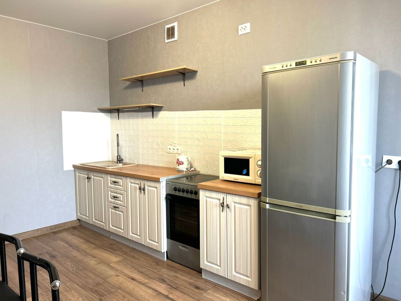 На кухне можно самостоятельно приготовить и разогреть пищу. Продуктовые магазины расположены вблизи.