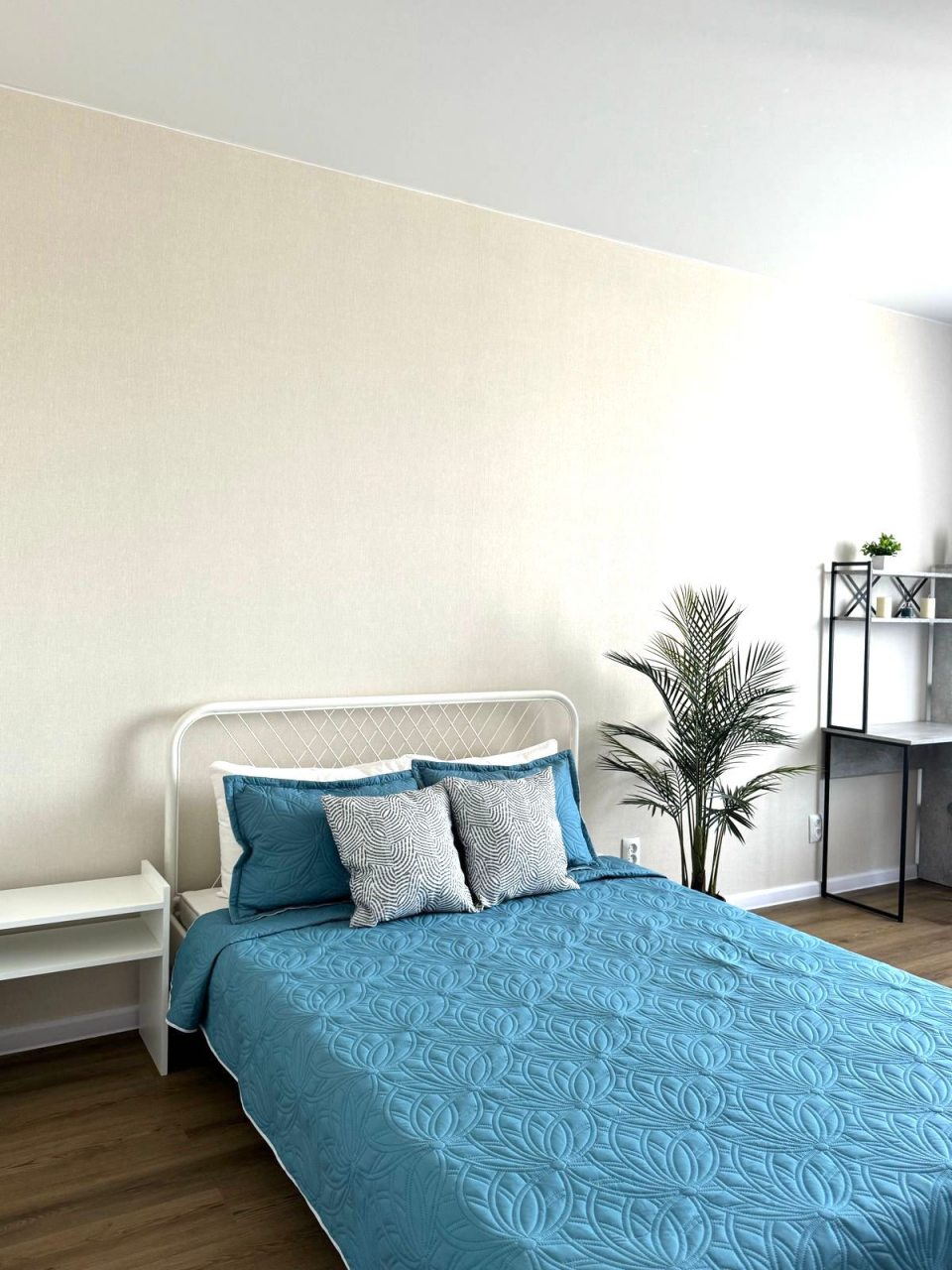 Для комфортного проживания имеется удобная двуспальная кровать с телевизором, письменный стол для работы, затемненные шторы для лучшего сна, зеркало в полный рост, различная мебель для хранения вещей, а также санузел со стандартным набором сантехники.