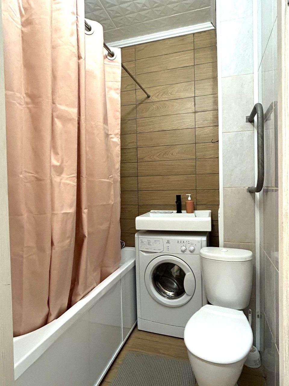 Внутри вы обнаружите кровать с качественным и удобным матрасом, телевизор, рейл для одежды, комод, а также полноценную ванну со стиральной машиной.
