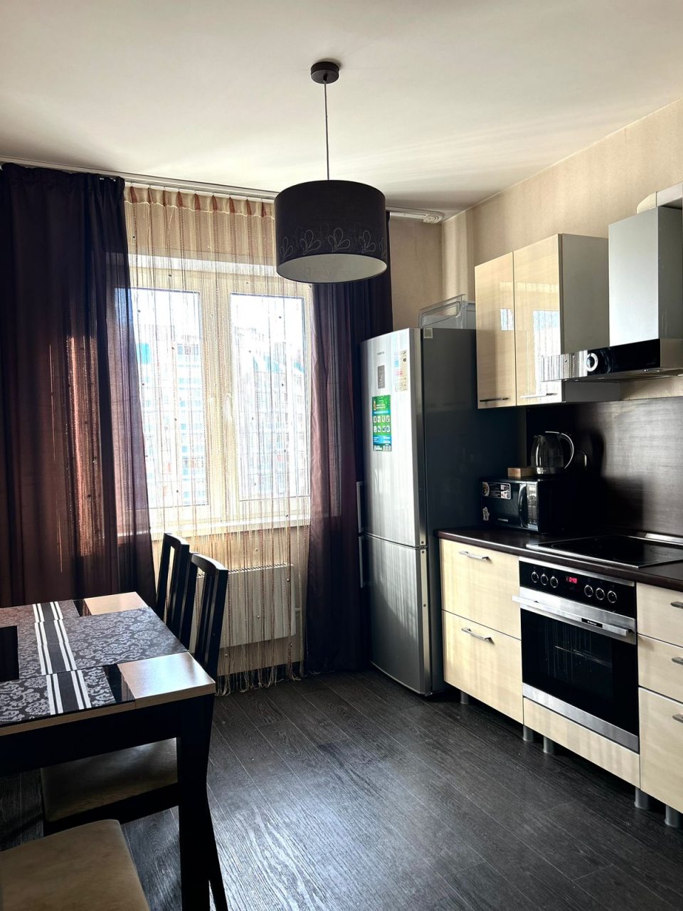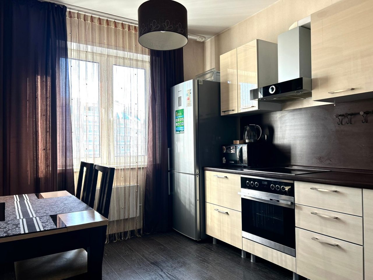 На уютной кухне будет приятно готовить любимые напитки и блюда, так как в наличии обеденная зона, варочная панель, СВЧ-печь, холодильник, чайник.
