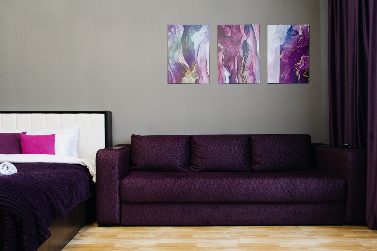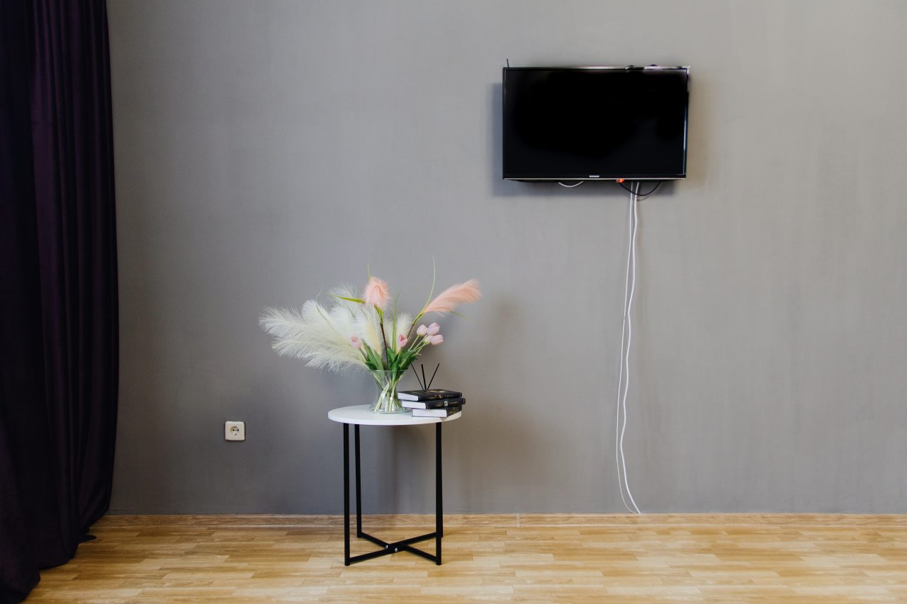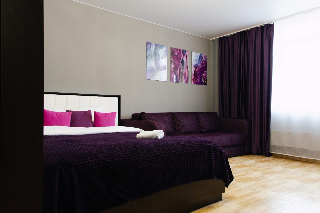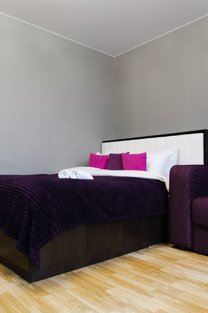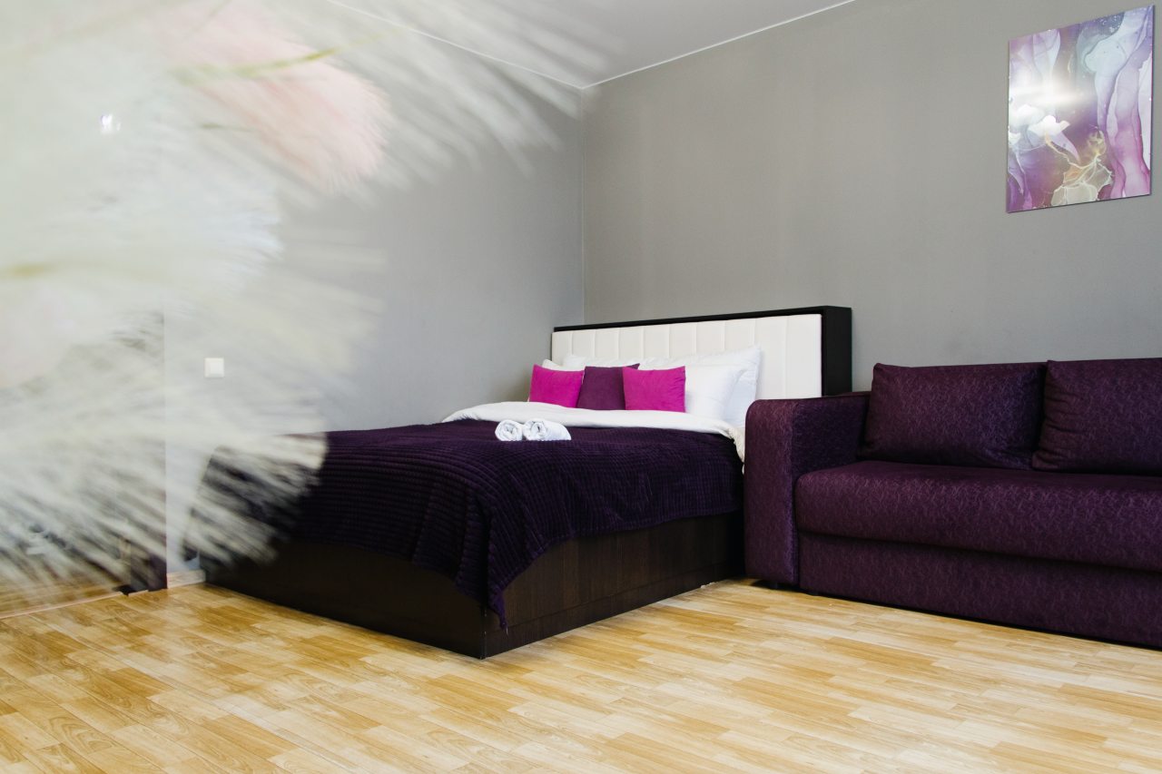 Для отдыха и проживания предоставляются комфортабельные апартаменты с приятным ремонтом. Для удобства проживающих установлены такие предметы мебели и техники, как раскладной диван, двуспальная кровать, а также телевизор для просмотра любимых программ.