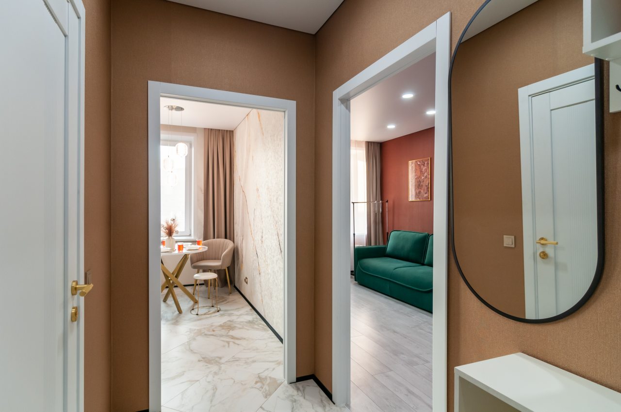 Внутри продумано всё для комфортного проживания, в том числе удобная двуспальная кровать, мягкий и вместительный диван, кондиционер, телевизор, полноценная ванна, стиральная машина.