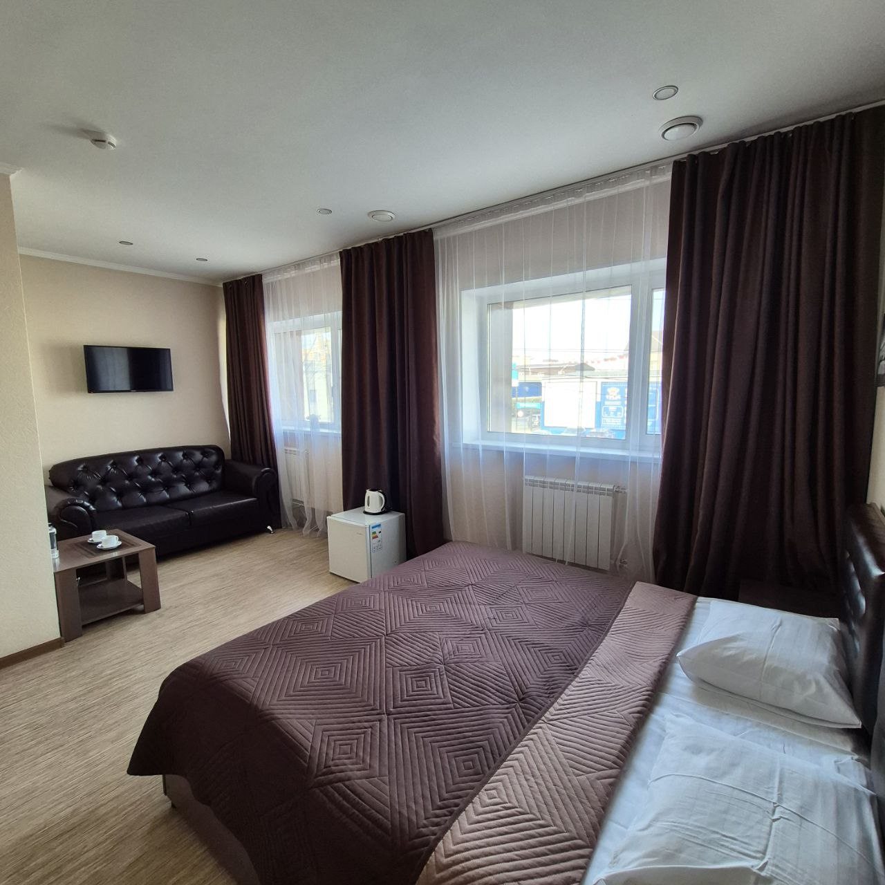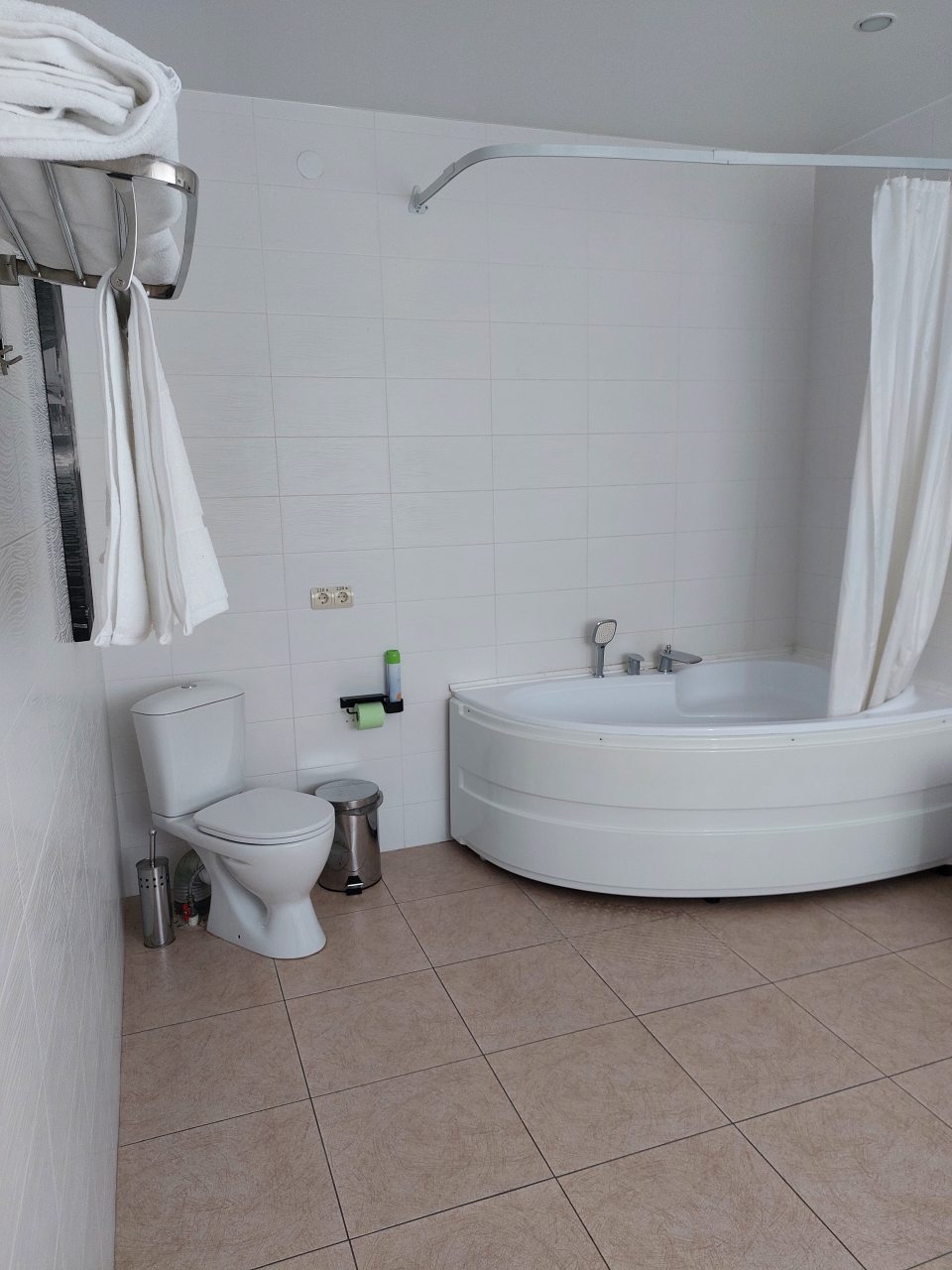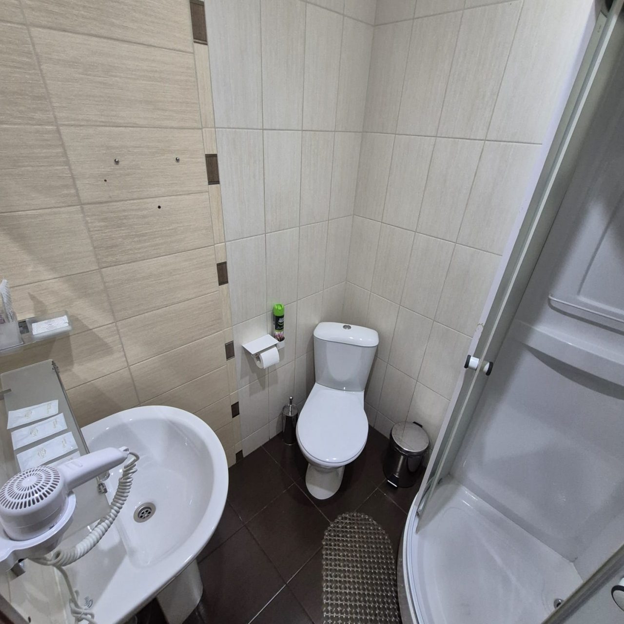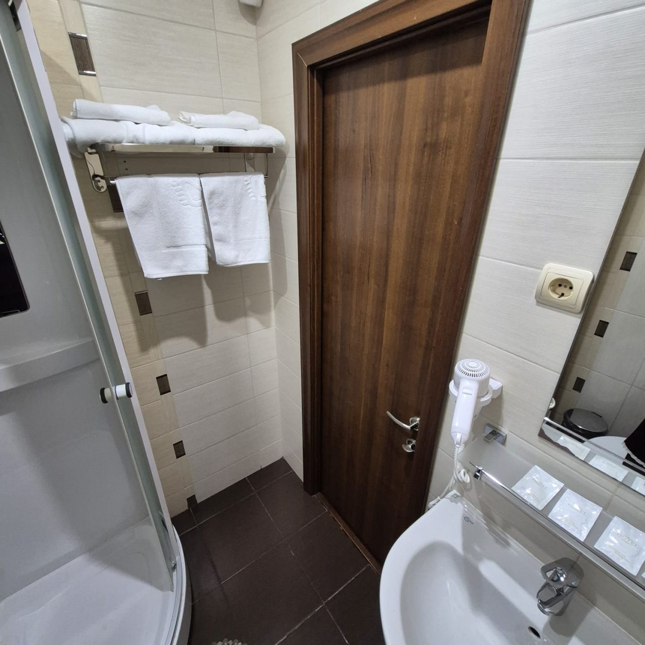Из недостатков: мне достался номер угловой на первом этаже возле курилки на улице - буквально пол метра от окна. Всё время болтали под окном мужики до 3 утра. Окна на первом этаже на уровне живота прохожих - открыв окно на проветривание, так как кондиционера нет в номере, любой с улицы человек может войти в номер. Я пока ночью лежала, слыша мужчин за окном боялась, что то из них залезет ко мне, пока буду спать. Окна номера так же выходят на дорогу - постоянное движение, спать невозможно из за шума