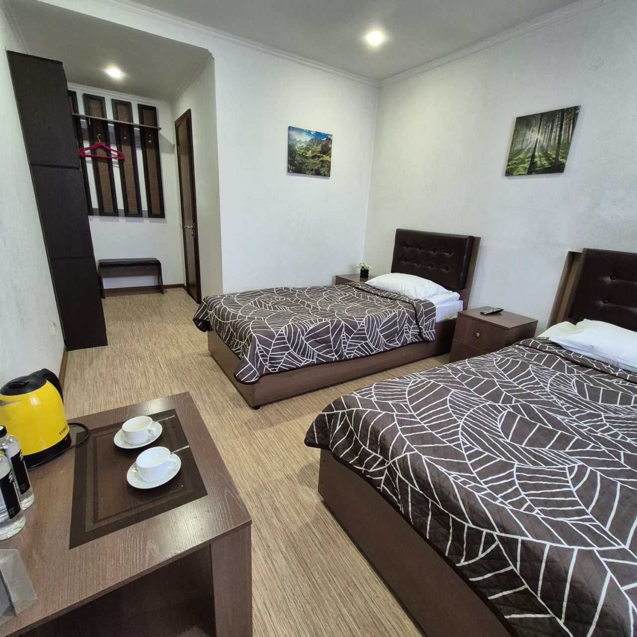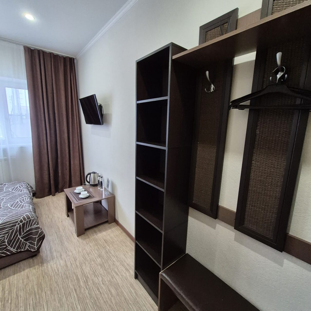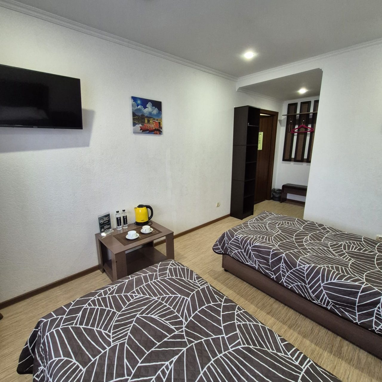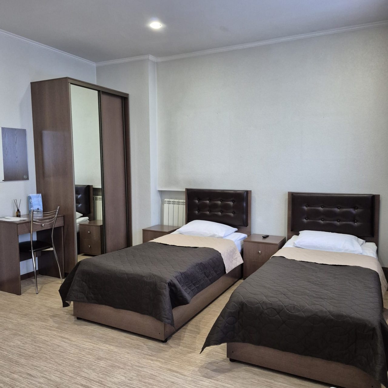 Из недостатков: мне достался номер угловой на первом этаже возле курилки на улице - буквально пол метра от окна. Всё время болтали под окном мужики до 3 утра. Окна на первом этаже на уровне живота прохожих - открыв окно на проветривание, так как кондиционера нет в номере, любой с улицы человек может войти в номер. Я пока ночью лежала, слыша мужчин за окном боялась, что то из них залезет ко мне, пока буду спать. Окна номера так же выходят на дорогу - постоянное движение, спать невозможно из за шума