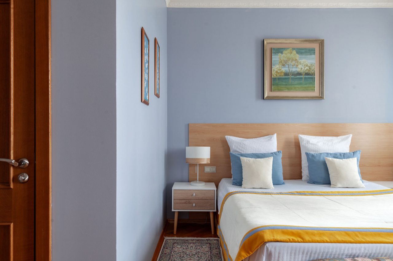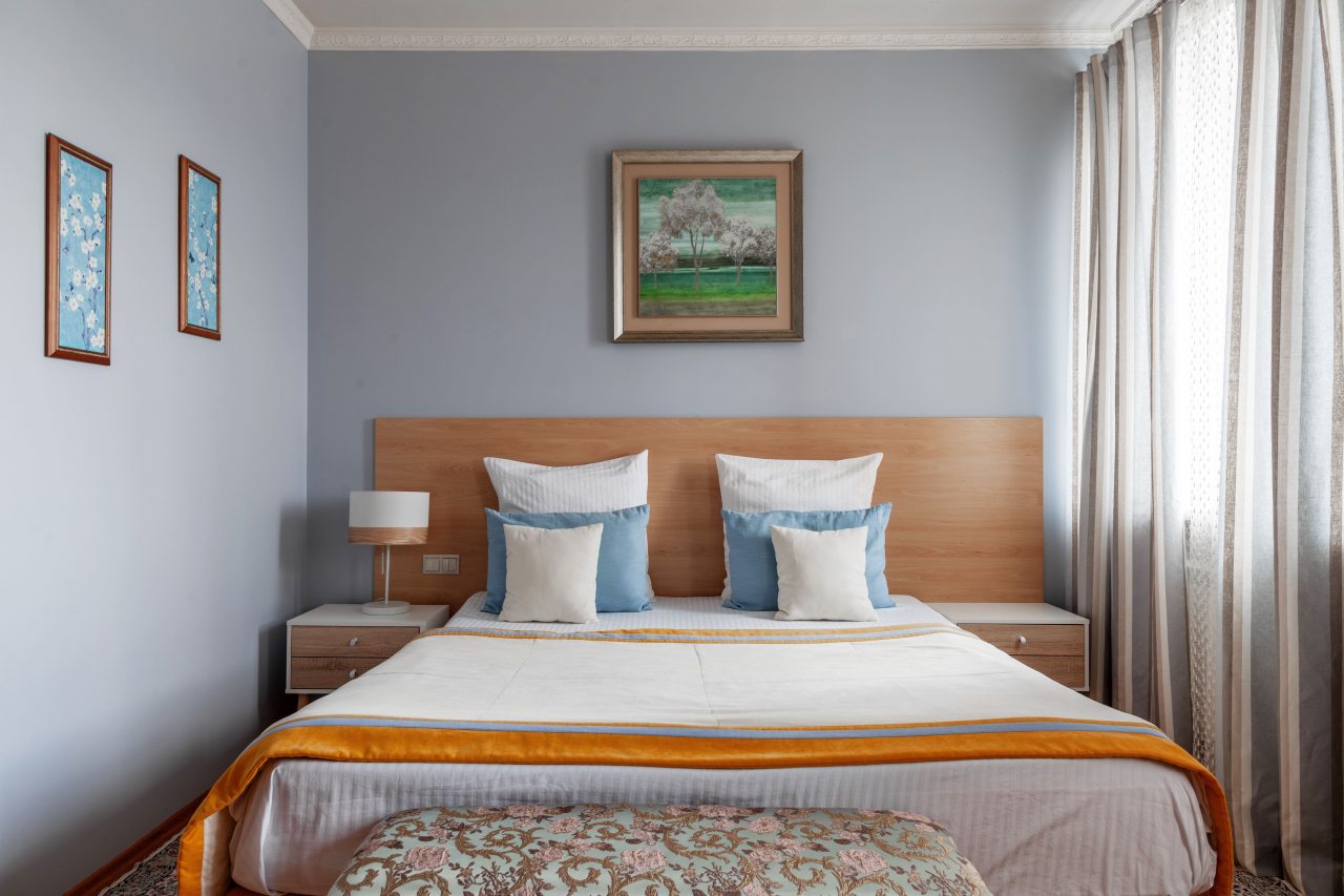 Чисто, уютно, уборка каждый день. Все принадлежности: халат тапочки, гель, шампунь, ушные палочки, шапочка для душа, зуб щетка и паста, фен и даже утюг небольшой. Отличное расположение отеля, вс в шаговой доступности.